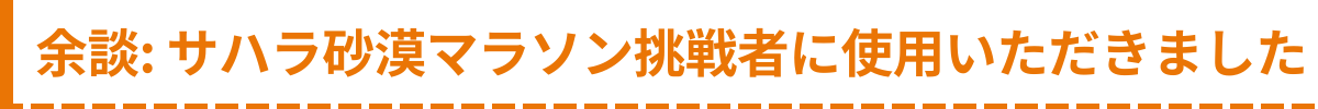 本格的な商品化に先立ち、2023年4月には【 サハラ砂漠マラソン 】に挑戦した日本人選手に私のトレイルフードを使用していただきました。