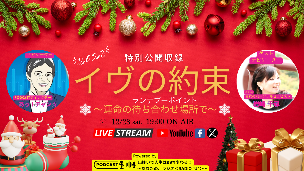 「イヴの約束2023~運命の待ち合わせ場所で~」を聞いてもらい、「あな、ラジ」を知っていただくことで、「何かを始めてみたい」「豊かな人生の一歩を踏み出してみたい」―そう感じている方と繋がりたいと思っています。
