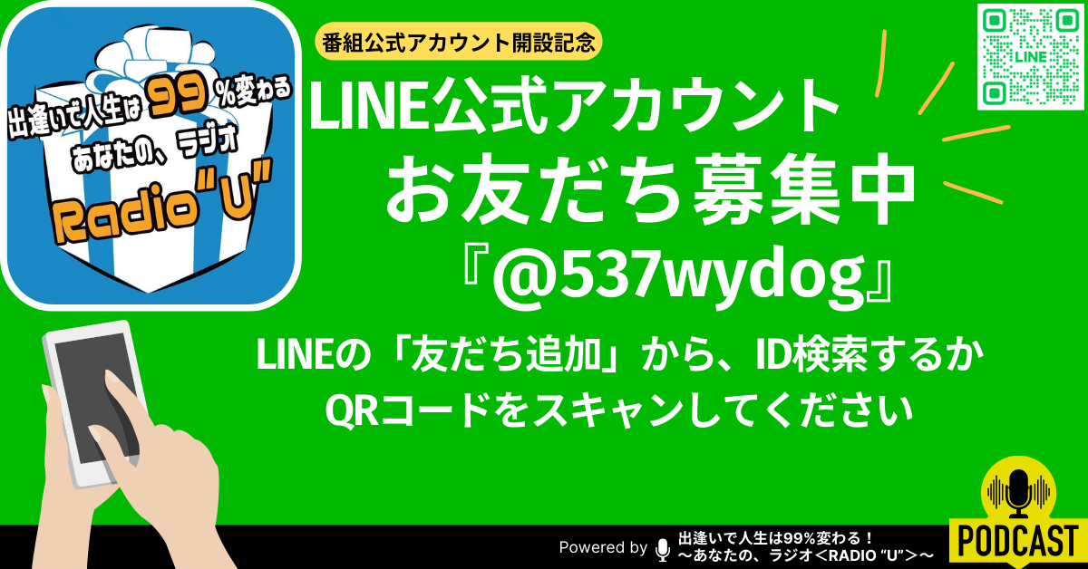 そして、<Radio“U”>の“U”には多くの意味が詰まっています。"ゆう"の音は、「友」「優」「勇」「結」「遊」「融」そして“あなた(YOU)”など、多くの言葉に結びつきます。つまり、この番組はリスナーの皆さん一人ひとりに、生活に豊かさや意義をもたらす「出逢い」を提供する場所なのです。