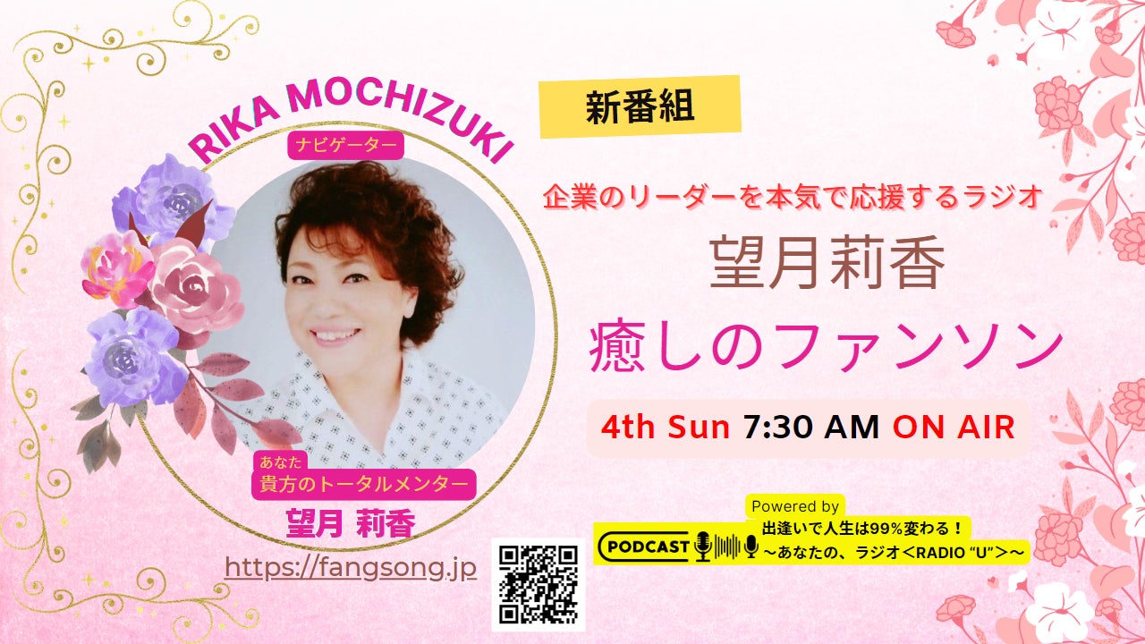 この番組は企業のリーダーを本気で応援する番組です。パーソナリティは株式会社トータルメンター代表取締役/ヒプノセラピスト望月莉香 さん<<プロフィール>>1963年東京生まれ2006年よりヒプノセラピストとして活動開始。世界的ヒプノマスターの授業のアシスタントを5年間勤める。これ迄に述べ1万人以上のクライアントとセッションを共有。ヒプノにできること。前世を見る、いじめ、虐待、不安、恐れ、苦手克服、対人関係、コンプレックス、生まれた目的等々ヒプノセラピーを通して、益々多くの人々が右脳という無意識を活性化し、豊かな感性で、新しい時代を生き抜くお手伝いをしたいと、願っております。番組へのアクセスは【こちら↓↓】からhttps://anaraji.com/category/rika_fangsong/【莉香さんとつながるSNS】●HP https://fangsong.jp●公式LINE https://lin.ee/Vfpd1g9●note https://note.com/tanpopo_rika/第1回「望月莉香 癒しのファンソン」第2回「望月莉香 癒しのファンソン」第3回「望月莉香 癒しのファンソン」