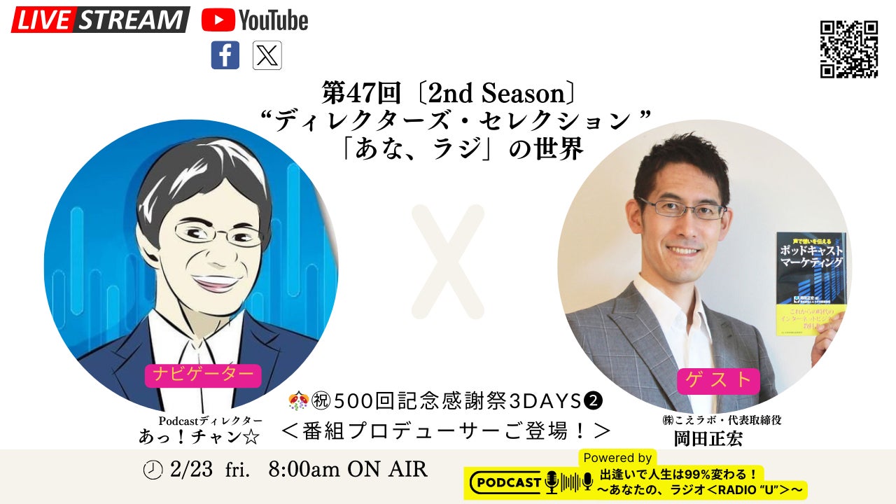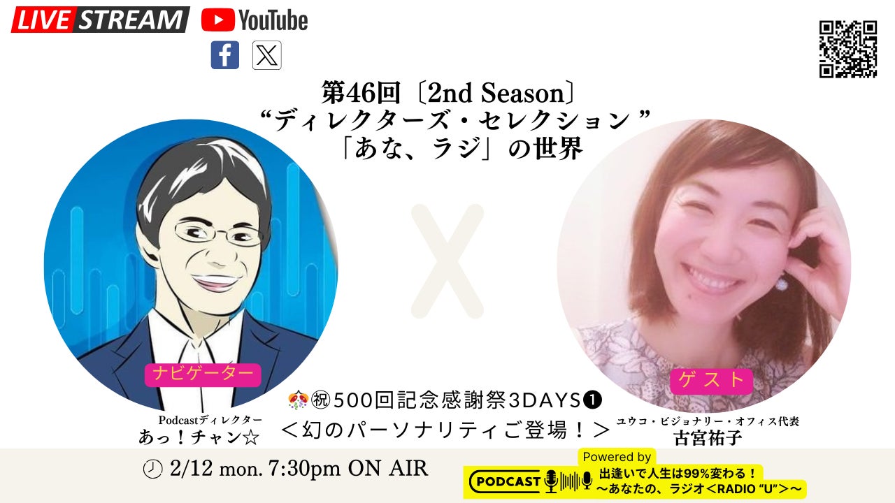 毎月満月の日は貴女(あなた)のパーソナルセラピス岩崎千尋が特別なゲストと共にお届けするアロマフォルマ月例編『満月セッション』満月毎日頑張る自分をいたわりながら、優しくケアをしてあげたいとき。月の力や【満月の特別セッション】を通じて、明日を生きるヒントにしていただけたら嬉しいです^^本日は2月24日㈯ 満月(21:31/おとめ座)第13回の<満月セッション>〔2nd Season〕【テーマ】ピンチをチャンスに!50代からの挑戦!ゲストは、X-mobile武蔵小山店店長 ・橋本 美幸 さま<<プロフィール>>★ビジョン誰もが、テクノロジーを活用して、毎日の生活を便利に楽しく、効率的に、趣味やいきがいをもって、健康で豊かなライフスタイルを実現するお手伝いをしたいと思っています。私自身が保護猫を飼っているのですが、保護猫活動の応援や、X-モバイルを通して、さまざまな応援活動ができるところも魅力の一つでX-モバイル武蔵小山店をオープンいたしました。★モットーお客様の気持ちや要望、信頼関係を大切にし、お客様に最適な解決方法を提供することを心がけています。【橋本さまとつながるSNS】・X-mobile武蔵小山店 HP ⇒【こちら】・X-mobile武蔵小山店 X(旧Twitter) ⇒【こちら】・X-mobile武蔵小山店 LINE公式アカウント ⇒【こちら】・荏原スマホパソコン教室 ブログ ⇒【こちら】・荏原スマホパソコン教室 LINE公式アカウント ⇒【こちら】橋本さまは2024年1月17日㈬「第30回 アロマフォルマ ~ビフォアフター編~」にゲストとしてご出演くださっています。橋本さまがご出演された第30回は【こちら】から聴いて頂けます。 是非とも聴いてください。=============================<<パーソナリティ・岩崎千尋さんのプロフィール>>東京の品川区西大井駅より徒歩5分、ステキな健康と美の完全個室の女性専用リラクゼーション&メンテナンスサロン「アロマフォルマ」のオーナー経営者で1児のママセラピストそして、「あな、ラジ」では3つの番組・岩崎千尋のアロマフォルマ https://anaraji.com/category/chihiro/・Dream Reflection ~音楽に香りを乗せて~ https://anaraji.com/category/chihiro/dream/・Kai運!わくわくコンパス ~未来(あした)の羅針盤~ https://anaraji.com/category/compass/をお持ちでご活躍中です。【「アロマフォルマ」とつながるSNS】・HP https://www.aromaforma.com・Facebook https://www.facebook.com/profile.php?id=100094463215145・Twitter https://twitter.com/aromaforma・Instagram https://www.instagram.com/aromaforma.chihiro?igshid=mil1aod3hq68・LINE公式アカウント https://lin.ee/ovWzP6x【「総合的」につながるSNS】・Linktree https://linktr.ee/aromaforma=============================<<アーカイブ配信中>>「イヴの約束2023 ~運命の待ち合わせ場所(ランデブーポイント)で~」