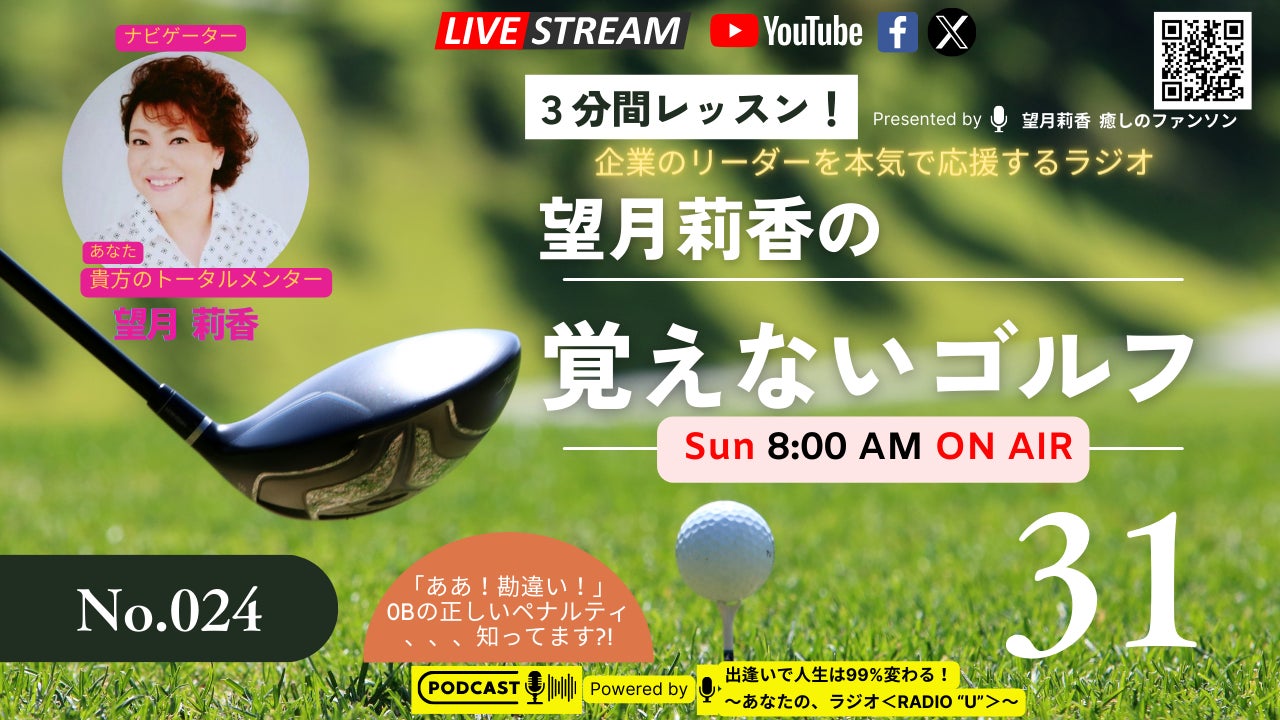 この番組はイメージゴルフを通じて企業のリーダーを本気で応援する番組です。【第26回「スウィングの不安定は『イメージのブレ!』にある」】パーソナリティはゴルフのインストラクター経験をお持ちの株式会社トータルメンター代表取締役/ヒプノセラピスト望月莉香 さん<<<プロフィール>>>1963年東京生まれ2006年よりヒプノセラピストとして活動開始。世界的ヒプノマスターの授業のアシスタントを5年間勤める。これ迄に述べ1万人以上のクライアントとセッションを共有。ヒプノにできること。前世を見る、いじめ、虐待、不安、恐れ、苦手克服、対人関係、コンプレックス、生まれた目的等々ヒプノセラピーを通して、益々多くの人々が右脳という無意識を活性化し、豊かな感性で、新しい時代を生き抜くお手伝いをしたいと、願っております。【莉香さんとつながるSNS】●HP https://fangsong.jp●公式LINE https://lin.ee/Vfpd1g9●note https://note.com/tanpopo_rika/<<アーカイブ放送中>>「イヴの約束2023 ~運命の待ち合わせ場所(ランデブーポイント)で~」