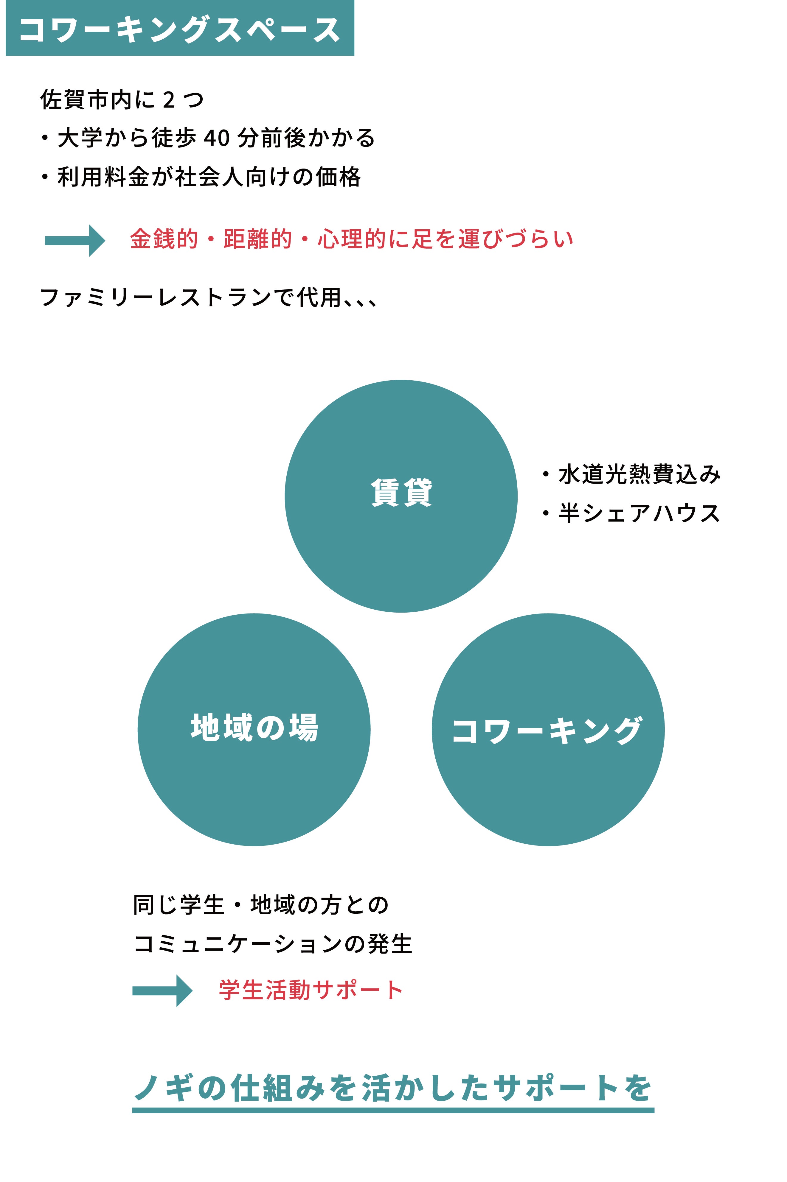 佐賀の学生の活動、挑戦の場をつくって学生の活動を加速させます!そして、その活動は佐賀に場所をもつノギを通して地域に還元されて佐賀という地域を加速させる存在になります!!