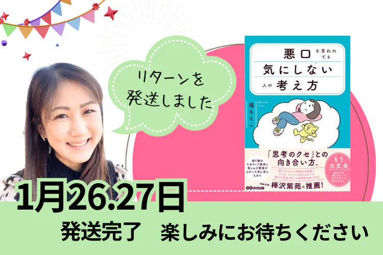 2024/01/27 15:42みなさまこんにちは!堀もとこです!昨日26日と今日27日で、全てのリターンの送付が完了しました(#^^#)クリックポスト・スマートレターなどそのリターンに合わせたかたちで発送したので月曜日以降にお届けになるかと思います。もうしばらく、お待ちくださいね。みなさまの顔、お一人お一人を思い浮かべながらお会いしたことない方はお名前やお住まいの県から思いをはせながら心を込めてお送りいたしました。もし、配送途中に何か事故があった場合は遠慮なくお知らせくださいね。(届かない・汚れている・濡れている などなど)これからも私を見守ってくださると嬉しいです。ありがとうございます(#^^#) もっと見る