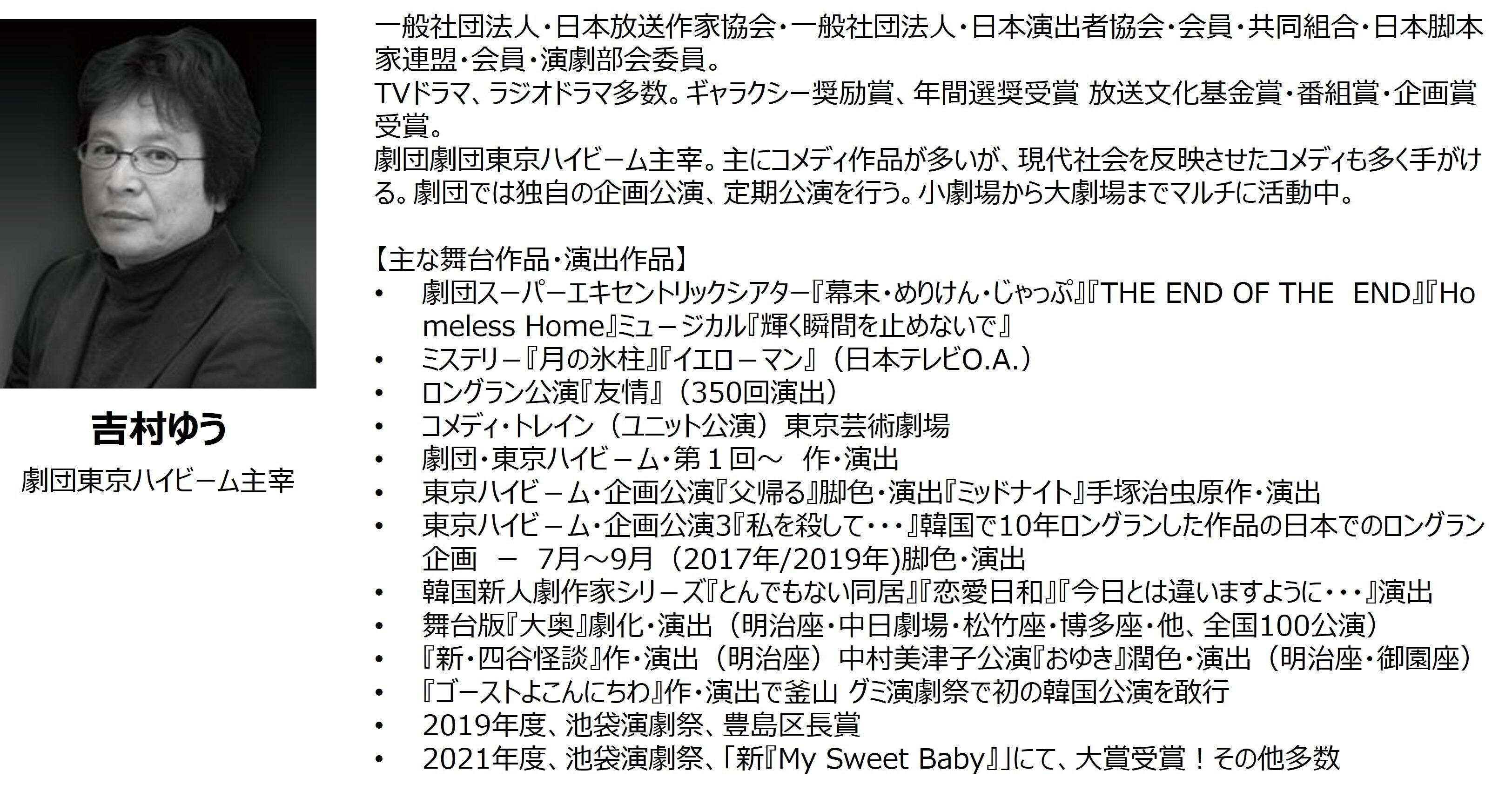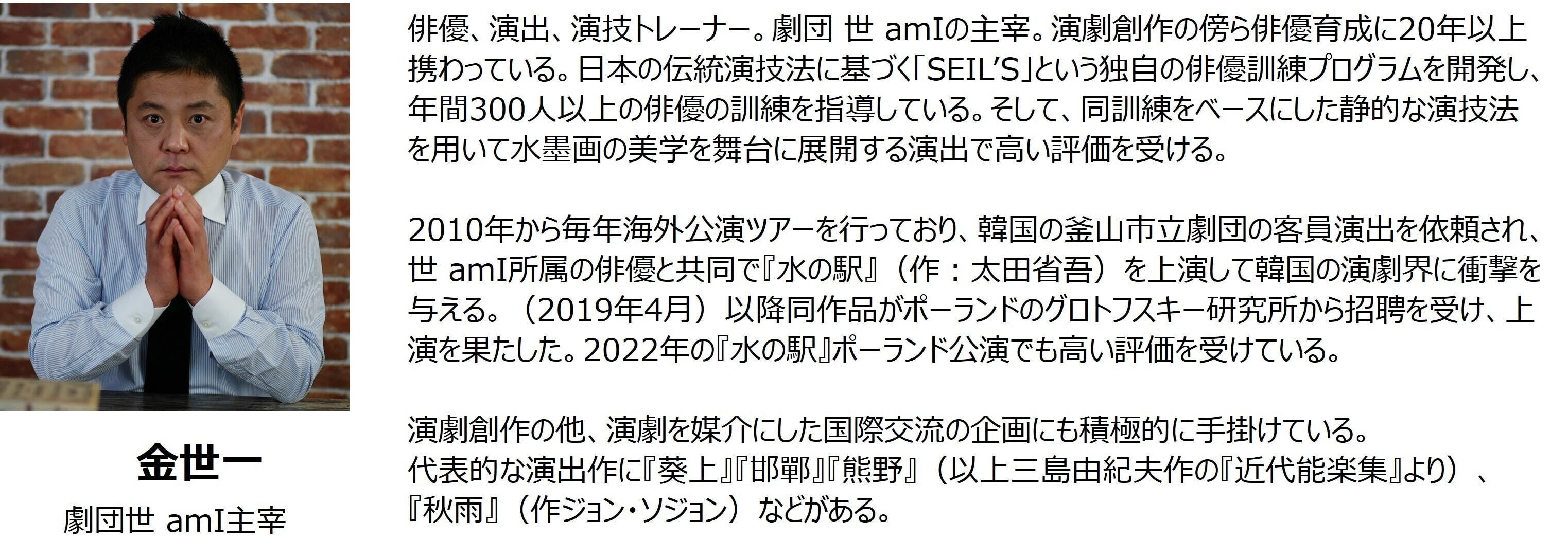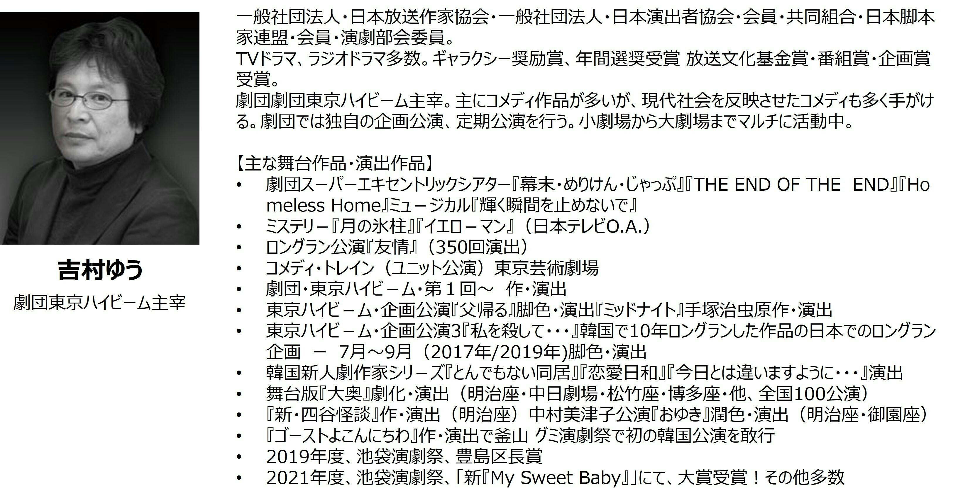 ・演出家:吉村ゆう(劇団東京ハイビーム主宰)、金世一(劇団世 amI主宰)