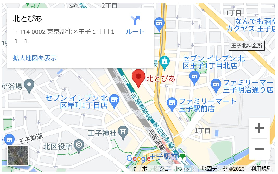 京浜東北線 王子「北口」より徒歩2分、都電荒川線「王子駅前」より徒歩 5分