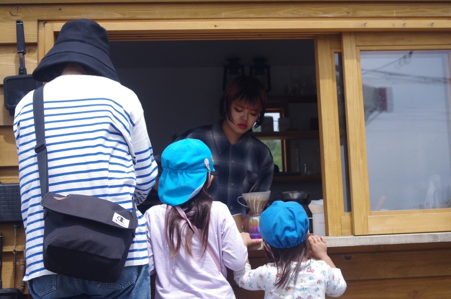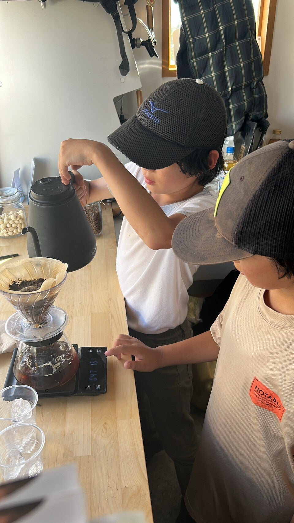 「コーヒーをドリップする」姿は、親がコーヒー好きでないと中々見ない光景だと思います。普段、広場で子供達と一緒に走り回っている私がコーヒーを淹れるときだけ超真剣。その姿をじっと見つめる子供達。