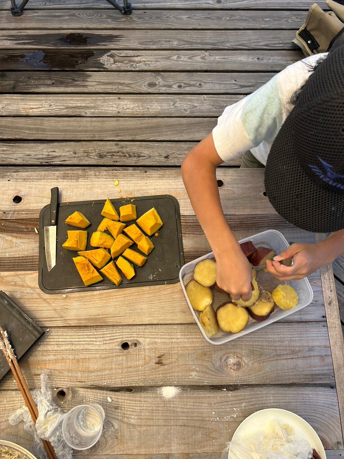 おやきも同様、いつも遊んでくれてる少し歳の近い大人が、なにかをしている、ことでまず興味を持ってくれました。