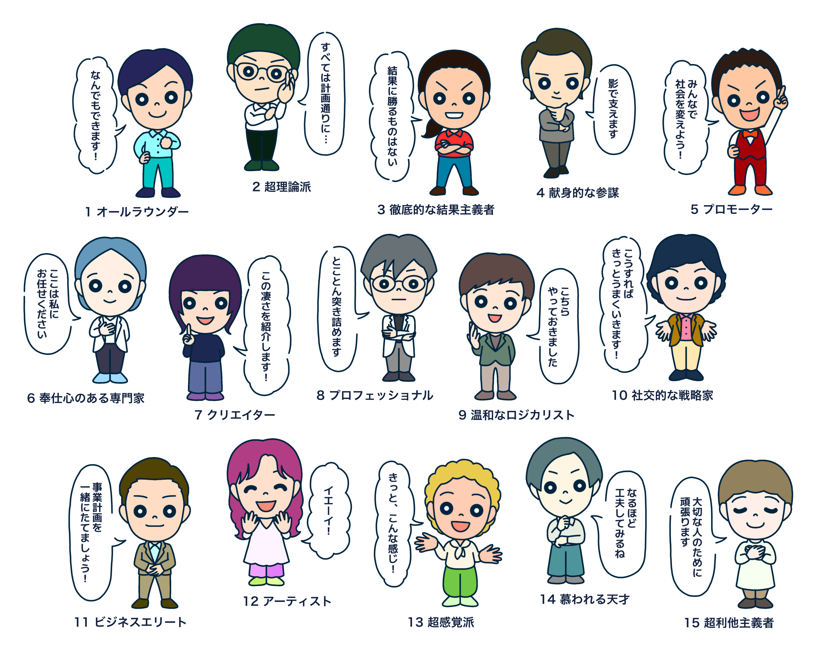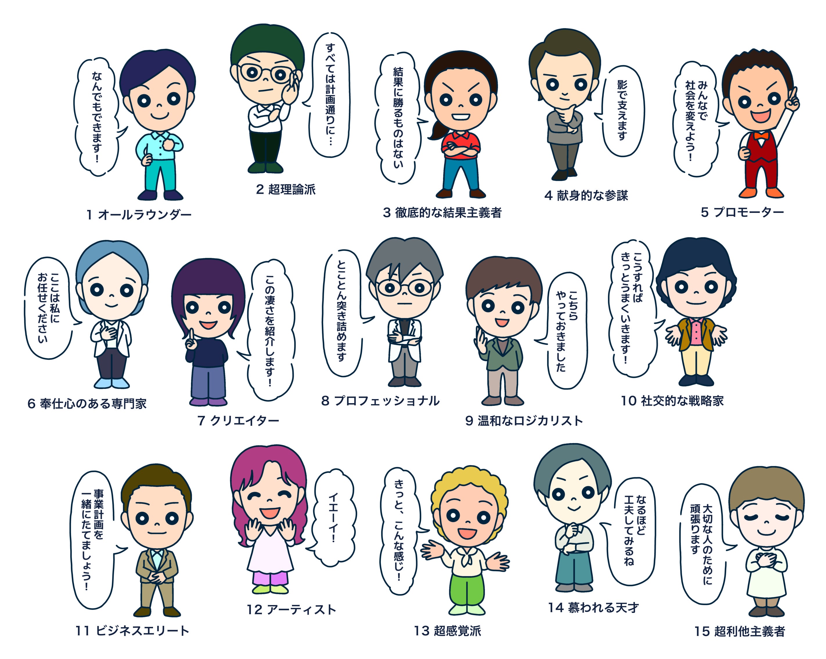 🔷脳使用傾向性の数値を、15のキャラクターで分かりやすく解説します。