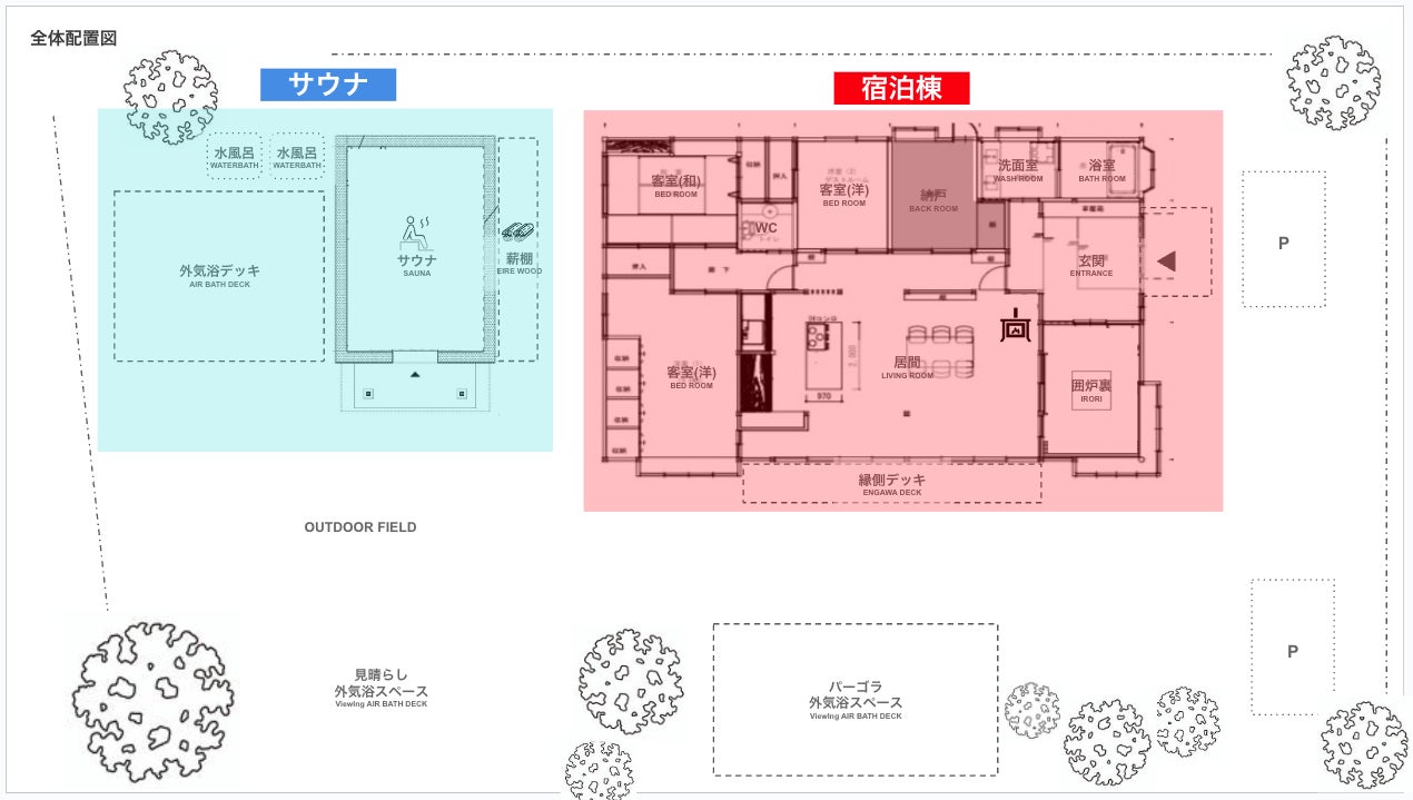 母屋 → 宿泊棟 離れ(石蔵) → サウナ