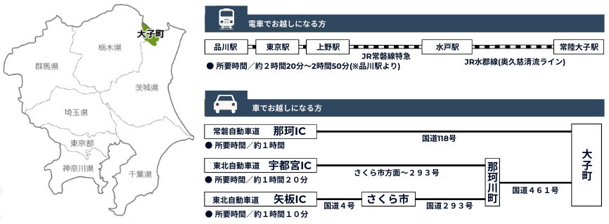 東京から約2時間20分〜3時間程度。電車でもアクセスができます。