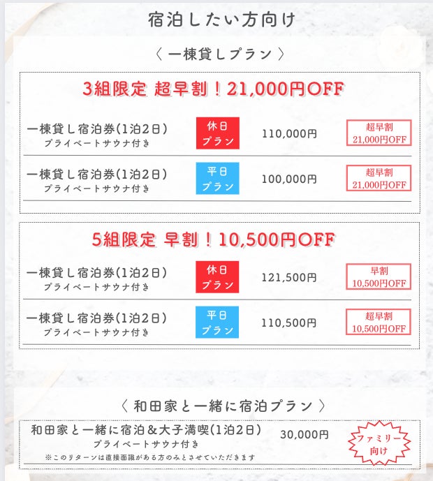 宿泊可能日:不定期(※予約ページ準備中)