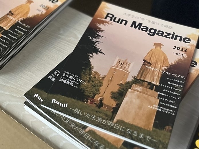 Runは早稲田大学で行われる11月の学祭に合わせ、年1回『Run Magazine』という雑誌を制作・販売するインカレサークルです。
