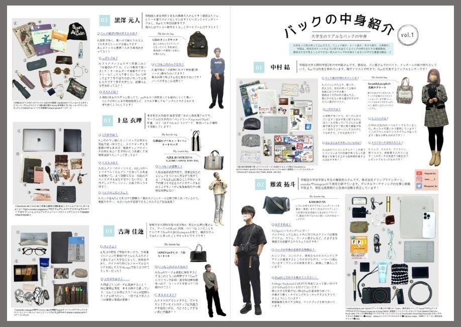 ・大学生のリアルな生活がわかる特集(大学生の1週間、バッグの中身、サークル紹介など)