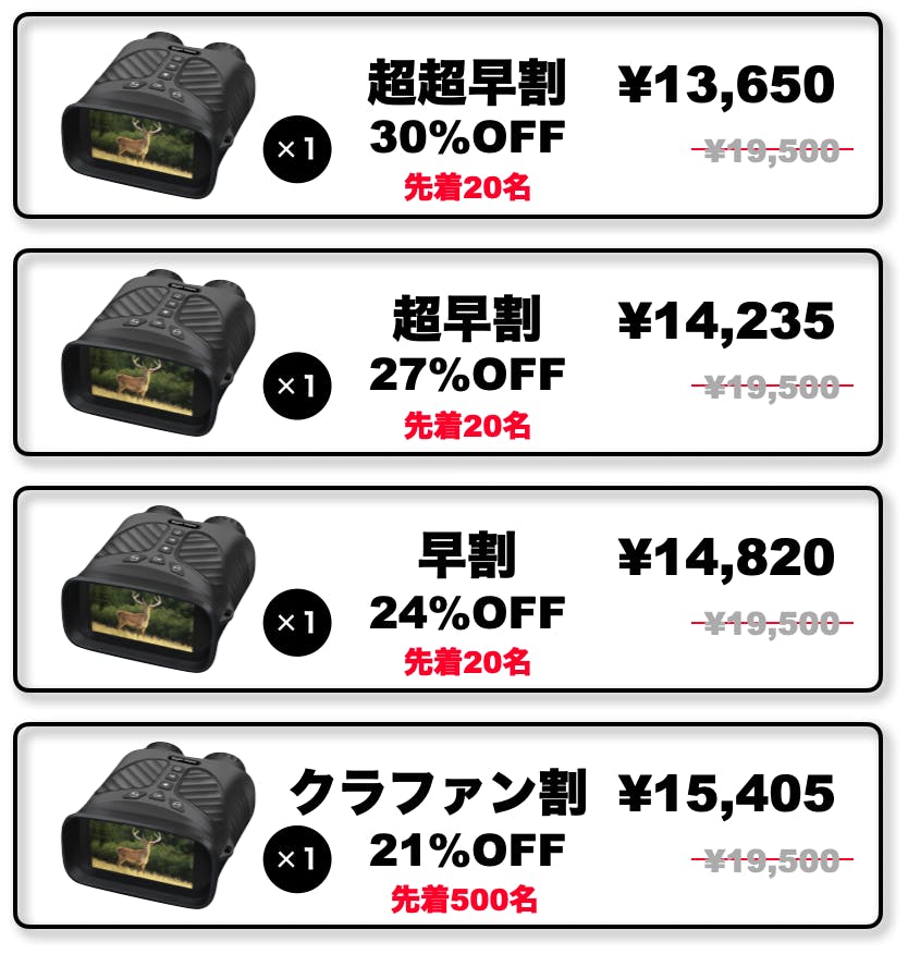 そこで今回は、片手で操作できるコンパクトな双眼鏡型暗視スコープをご紹介したく存じます。