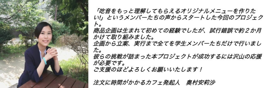 ここまでこのクラウドファンディングのページを読んで下さりありがとうございました。この「注文に時間がかかるカフェ」の活動に対する思いを書き連ねたところ少し長くなってしまいましたが、最後までご一読してくださると嬉しく存じます。
