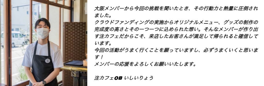 大阪府和泉市で開催される『注文に時間がかかるカフェ』(略して注カフェ)のクラウドファンディングを担当させていただきます、本田と樋渡と申します!