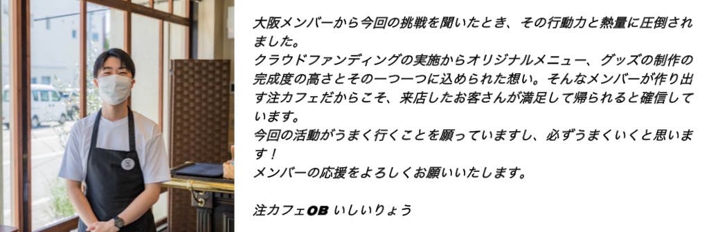 今回、このクラファンに目を通してくださり、そして、最後まで読んでいただき本当にありがとうございます。この最後にでは私が注カフェの活動を通して皆さんに伝えたいことを書きます。