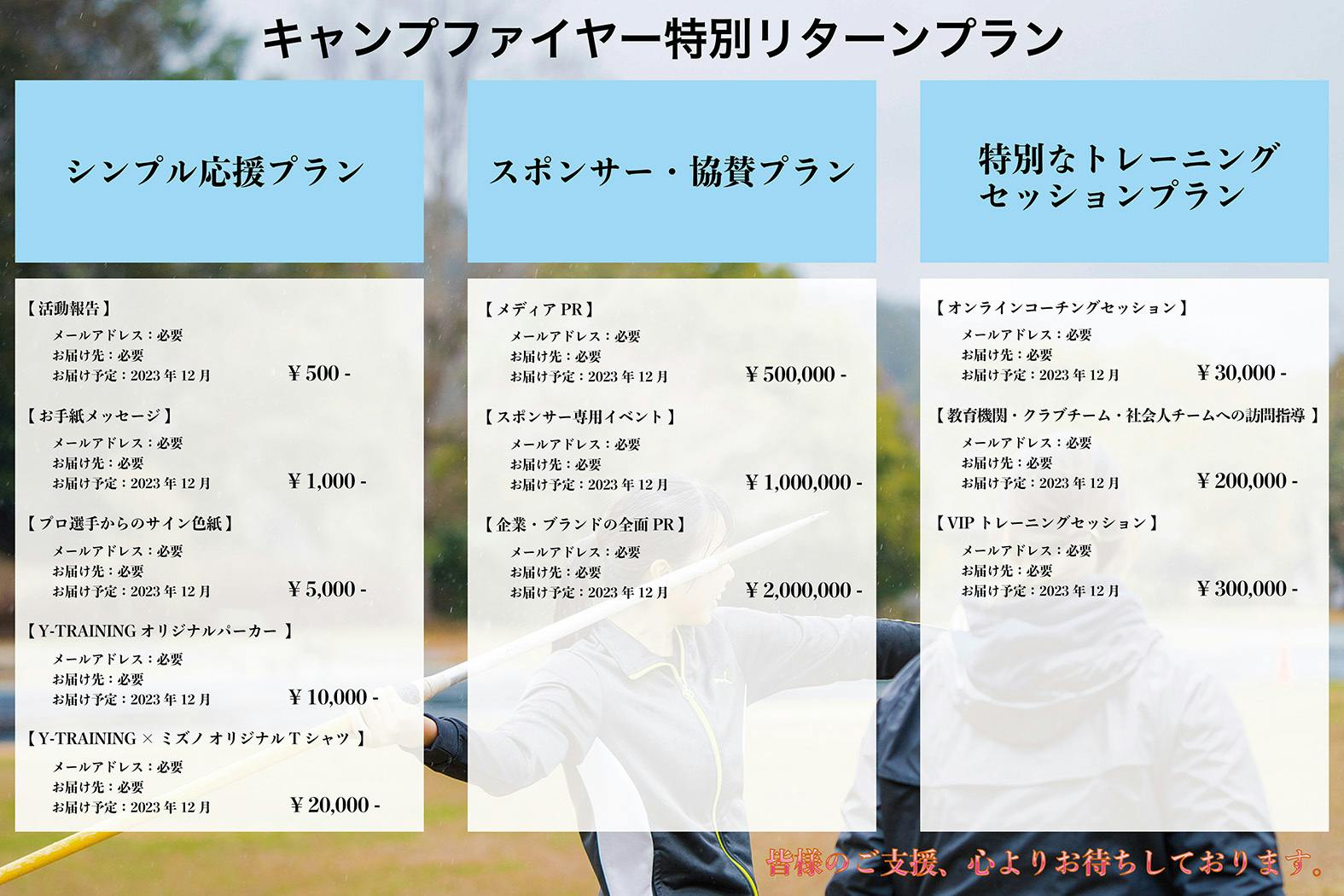 2023/08/02 15:29Y-TRAININGプロジェクトへのご支援、誠にありがとうございます。我々のプロジェクトに対する熱意が広がり、これを受けて多くのプロ選手がY-TRAININGへの参加を決定しました。やり投げ選手として活躍する、崎山 雄太選手参加決定!!彼は、日本歴代5位の記録を持ち、そして2023年の日本選手権で3位表彰を受けるなど、、、陸上界注目の選手です。その経験と知識を弊社と共に合宿で共有して頂けます。これらの選手たちの参加は、Y-TRAININGが一層の進化を遂げるための大きな一歩となります。引き続き、皆様からの温かいサポートを心よりお願い申し上げます。次回の更新でも新たな情報をお伝えします。ご期待ください。Y-TRAININGチーム一同 もっと見る