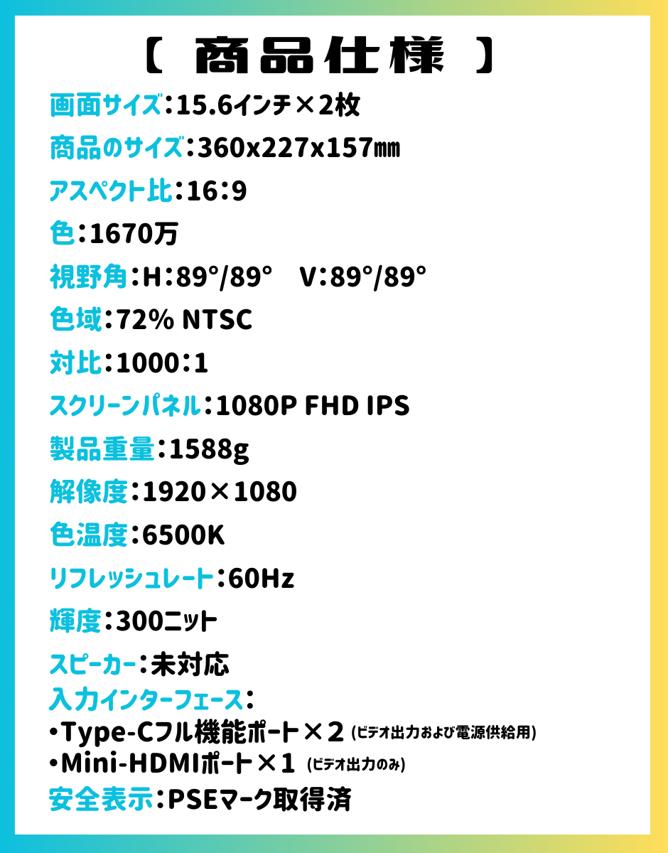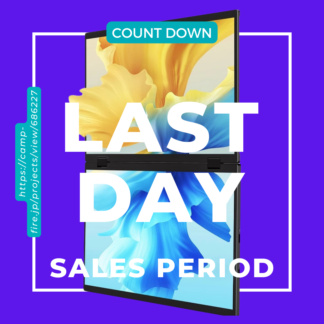 2024/04/14 13:00こんにちは、Growder株式会社です。本日、支援募集の最終日でございます…!!!本日までこの投稿をみてくださった皆さん、誠にありがとうございます!また、お気に入り登録も沢山いただき、毎日励みになっておりました。本当にありがとうございます!皆さんにこちらのマルチモニターをご紹介できるのも、本日が最終日ですので、しっかりお伝えしていきますよ~!!ぜひ最後までスクロールついてきてくださいませ⇩⇩⇩この商品は以下の方にオススメしたい商品なんです!⇩⇩WEBデザインをはじめたけれど、モニターが一台でプレビュー画面と交互に見ている方視聴者に見せる画面と作業用の画面を分けたい配信者の方PCゲームをしながら、同時に攻略サイトやSNSを開きたい方商談などでお客様に比較した資料をみせたい営業マンの方【製品の紹介】コンセントと本体を繋ぐケーブルと、本体とデバイスを繋ぐケーブルのたったの2本を差し込むだけで、簡単に設置ができます。また、デバイスにソフトウェアをインストールすることも無いため、使いたい時にスグにお使いいただける手軽さも推しポイントです!マルチモニターというと、大きいモニターがドン!とあり、凄く場所をとるイメージがありませんか?こちらの商品は、ディスプレイが上下に2枚連なっており、省スペースでお使いいただけます。また、折り畳むと標準的なノートPCと同じサイズ感になり、厚さも僅か1.6cm!!かなり薄くなりますので、ご自宅で使用しない時は収納できますし、標準的なノートPCと同じ感覚で、どこでも持ち運びいただけます!ご自宅で拡張画面としてご利用いただくだけでなく、商談やプレゼン等で複数名に同じ資料を見せたい瞬間はありませんか?こちらは360°に画面を動かすことができ、さらに上部の画面を回転させることもボタン1つでできるため、お相手を待たせることなくササッと準備できます。また、モニターの角度を調整することが出来るため、首や頸椎への負担を軽減できる人間工学に基づいた設計となっております。【資金の使い道】・新たに製品を開発する為の資金とし、今後より良いご提案を皆様にしたい!・リターン製品の制作費・各リターン発送料・CAMPFIRE手数料【注意事項】キャンセル・返品:お客様都合による返品・キャンセルはできませんのでご注意ください。なお、製品到着後に破損や初期不良がある場合には交換させていただきますので到着後5日以内に「メッセージで意見や問い合わせを送る」からお問い合わせください。<募集方式について>本プロジェクトはAll-in方式で実施します。目標金額に満たない場合も、計画を実行し、リターンをお届けします。私たちGrowder株式会社は、日々ネットワークが拡大・躍進していく世界市場の中で、『Growing(成長)』+『Global(世界的)』+『Order(オーダー)』をコンセプトに、より多くの方のより多くの選択肢になるべく国内外にて尽力しています。そして、みなさまの私生活により身近に感じることができる成長への道筋を私たちが確立したいと考えています。メーカー名:Growder株式会社住所:埼玉県さいたま市南区白幡3丁目6番ウェブサイト:https://growder.jp/事業内容:・総合貿易業務・総合輸出入代行業務・ネットショップ業務・中国市場進出サポート業務・OEM製造、PB製造サポート業務 もっと見る