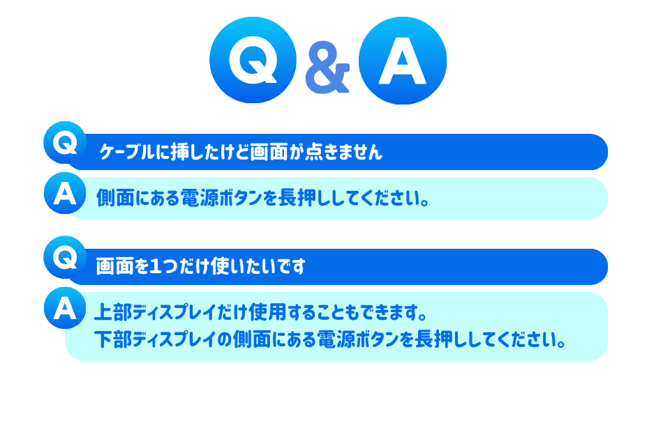 こちらの商品は、ディスプレイが上下に2枚連なっており、省スペースでお使いいただけます。