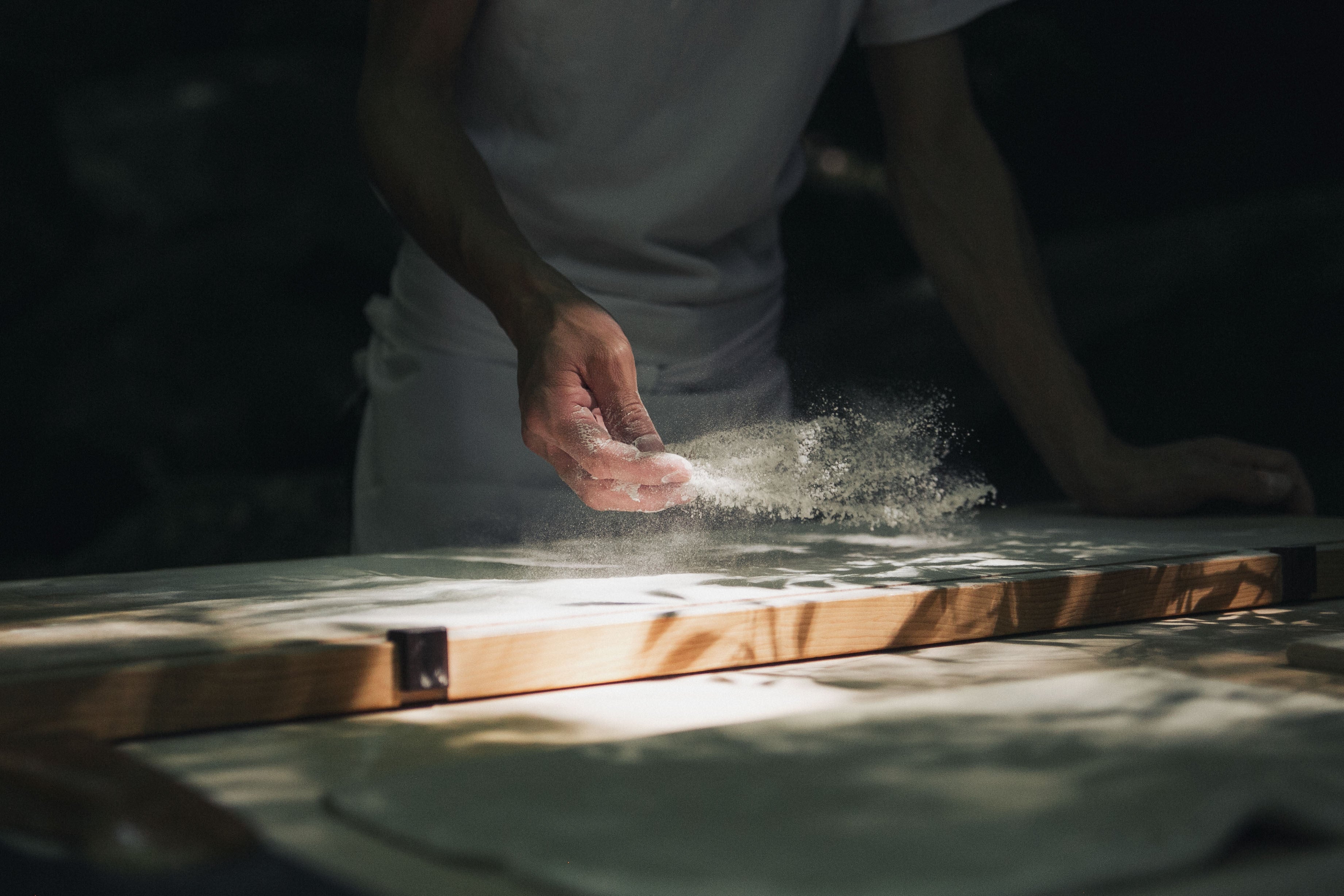 これまで、大分、大阪、そして、自家栽培の蕎麦生産者さんが経営する、高千穂おたに家で、土作りから蕎麦の栽培まで携わってきました。そして、大事に収穫した蕎麦の実から、どれだけの旨味を引き出せるのかを、常に意識してきました。