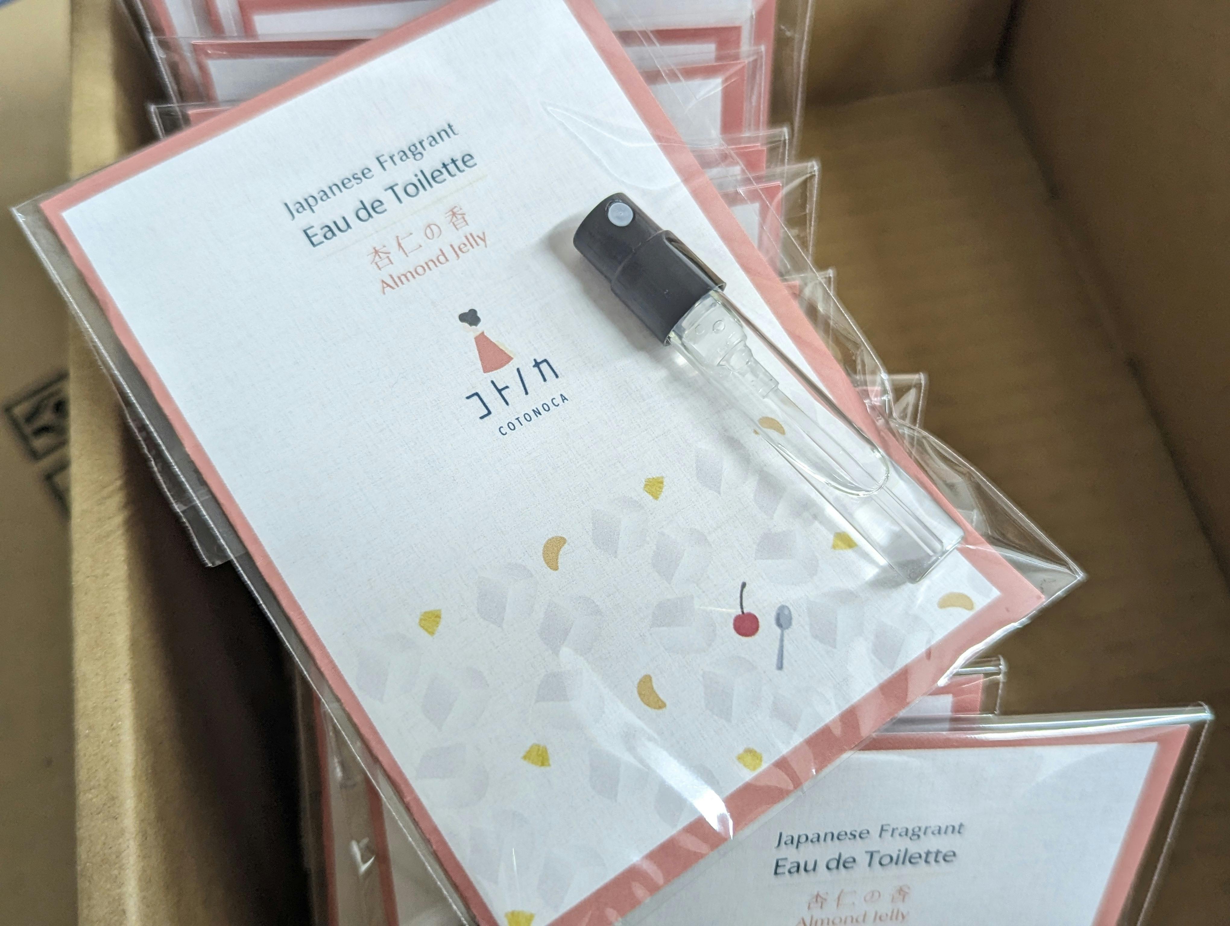 発案当初は「杏仁豆腐の香ってなに…?」「杏仁豆腐の香りを身に纏いたい人がいるのか」と多くの関係者を困惑の渦に叩き込んでしまいましたが、試作に試作を重ね、担当の方が香料会社まで出向いて夜中まで試行錯誤してくださりました。その出来上がった香りはもはや杏仁豆腐。困惑の渦中の上司も、杏仁豆腐があまり好きじゃないと言っていた先輩も「これ好き!!!!!!」と。