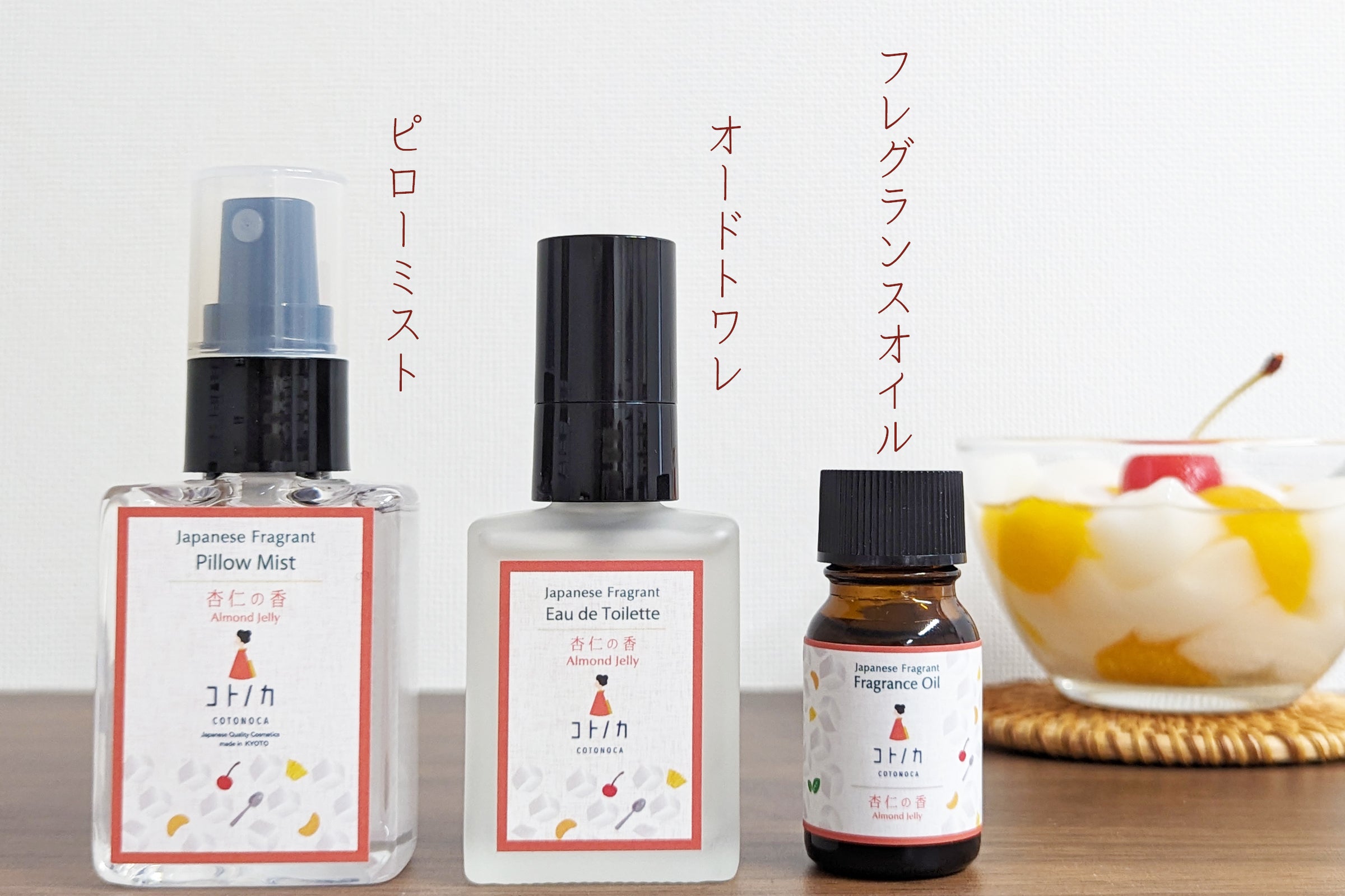 みかんやパイン、さくらんぼを添えてぷるぷる食感が魅力の杏仁豆腐から着想を得た香りです。