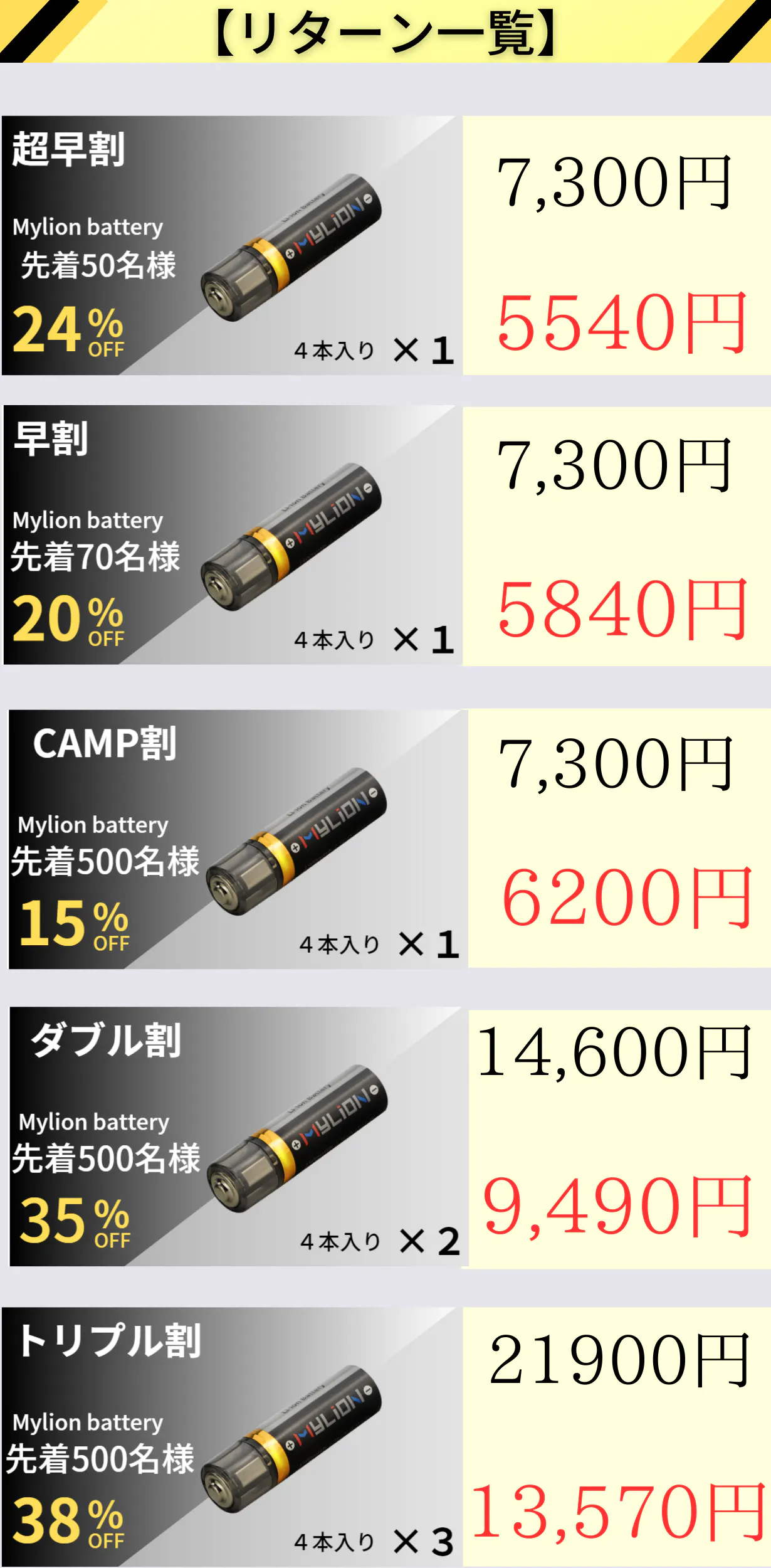 電気代が高騰してきているこの時代に電池で使用できるものは電池に切り替えて少しでも節約につながると同時に、繰り返し使ってごみの発生を極力減らして地球に貢献できたらと思い、この度このMylionbatteryの輸入することに決めました。