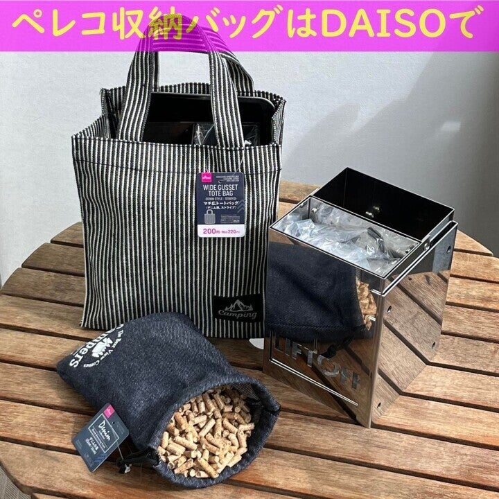 ペレコ専用収納バッグの用意が無くて恐縮ですが、DAISO100円ショップでピッタリな袋いろいろ見つかります! 私が選んだ200円トートバックと100円キンチャク袋のコーデいかがでしょうか?