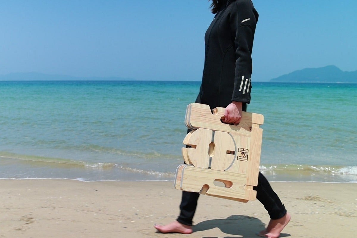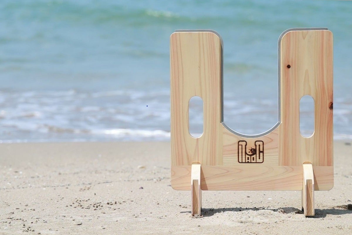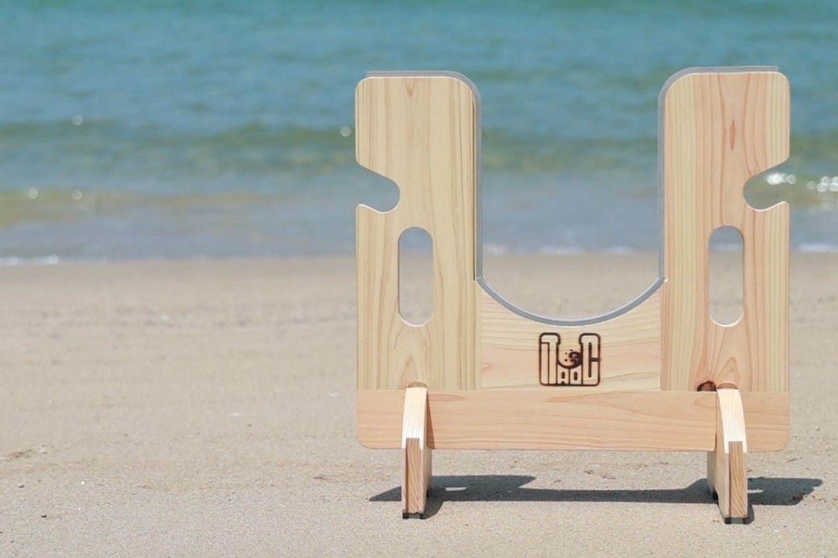 ◎福岡県産ヒノキの間伐材から生まれたSUP/サーフボード用のラックです。