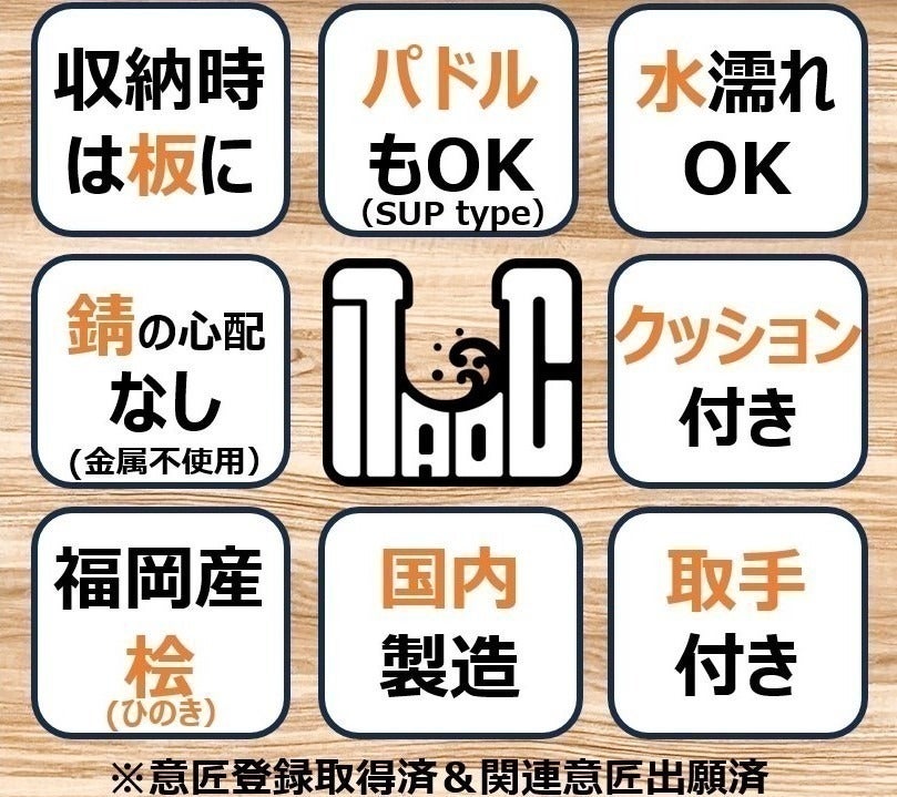 ◎代表の私自身が趣味として5年前にSUPを始めたのですが、自分がイメージするようなボードラックが見当たりませんでした。