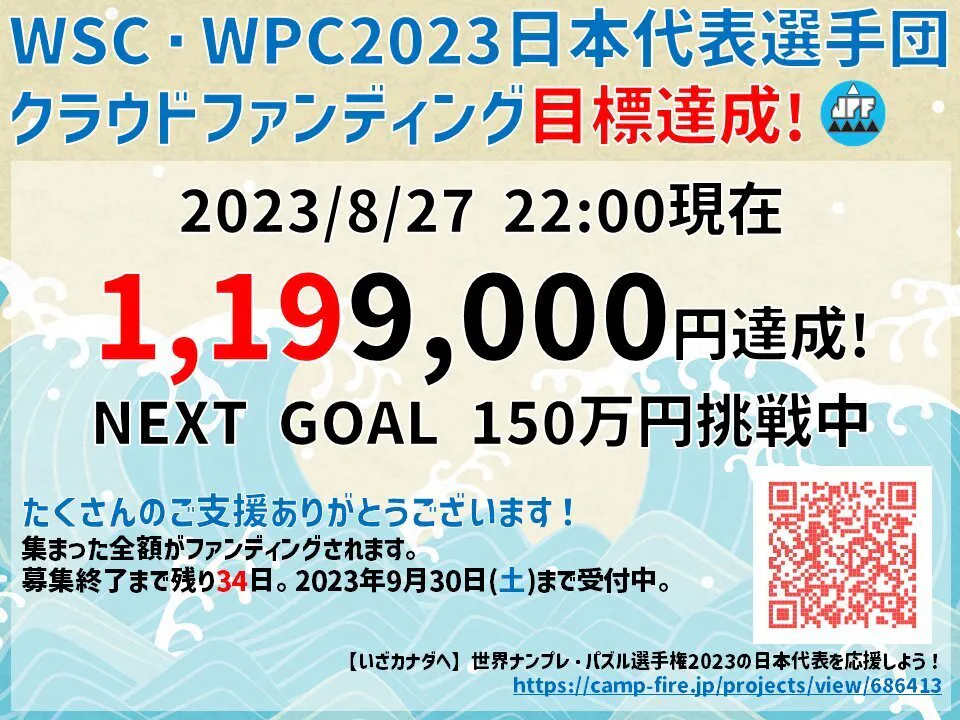 当初の目標は達成しましたが、ご支援は9/30(土)まで受け付けております。これからのご支援も、今までと同様に日本代表選手団の遠征費として使わせていただきます。