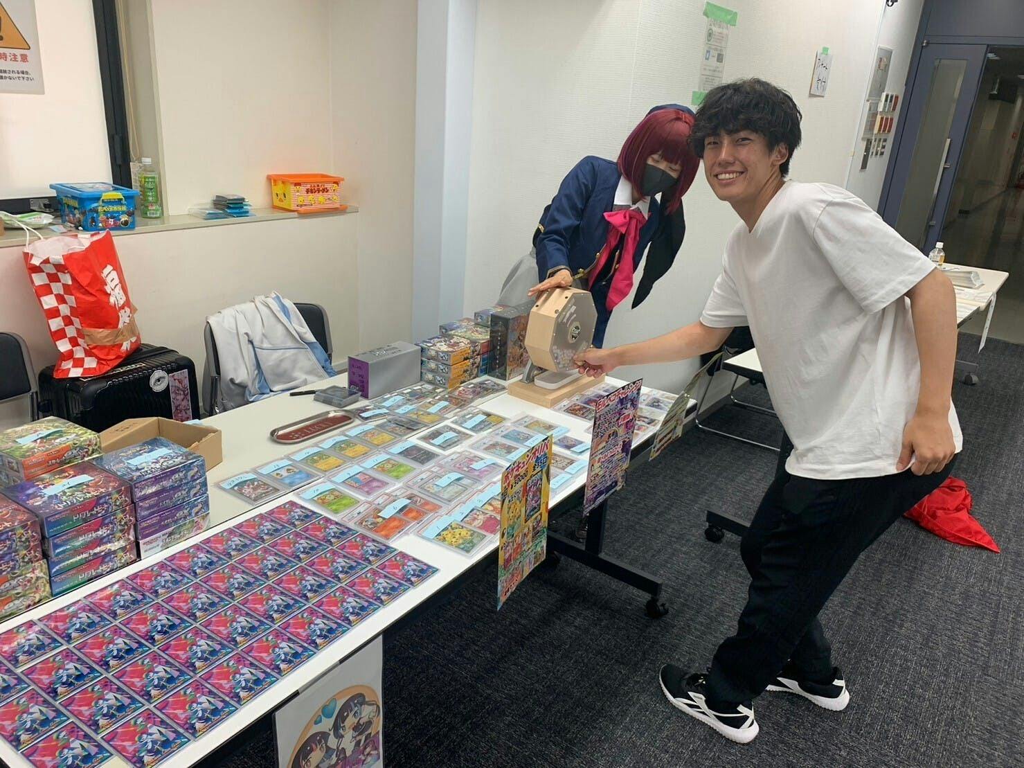 プレイマットやスリーブなどトレカ関連商品の販売、オリパやくじ、ビンゴイベント。