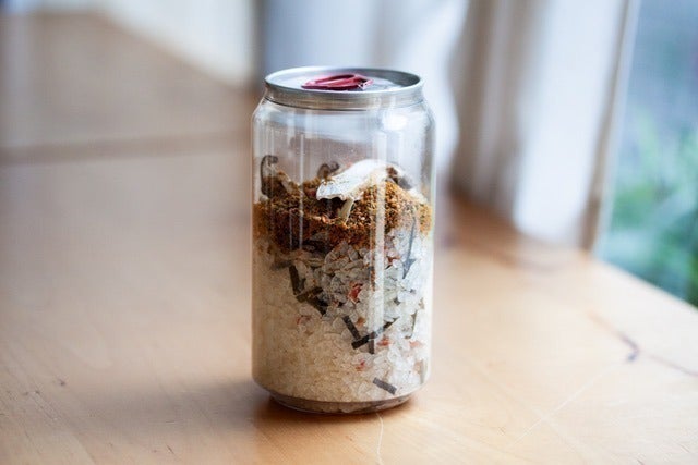 リターン商品は支援者の声にこたえカスタマイズされた缶入り非常食炊き込みご飯、パスタキット、オートミール3本セットをお届け。味は味噌、梅、カレー、にんにくの中からお選び頂けます。支援後にマシン購入を考えていますので現時点では画像がありません。