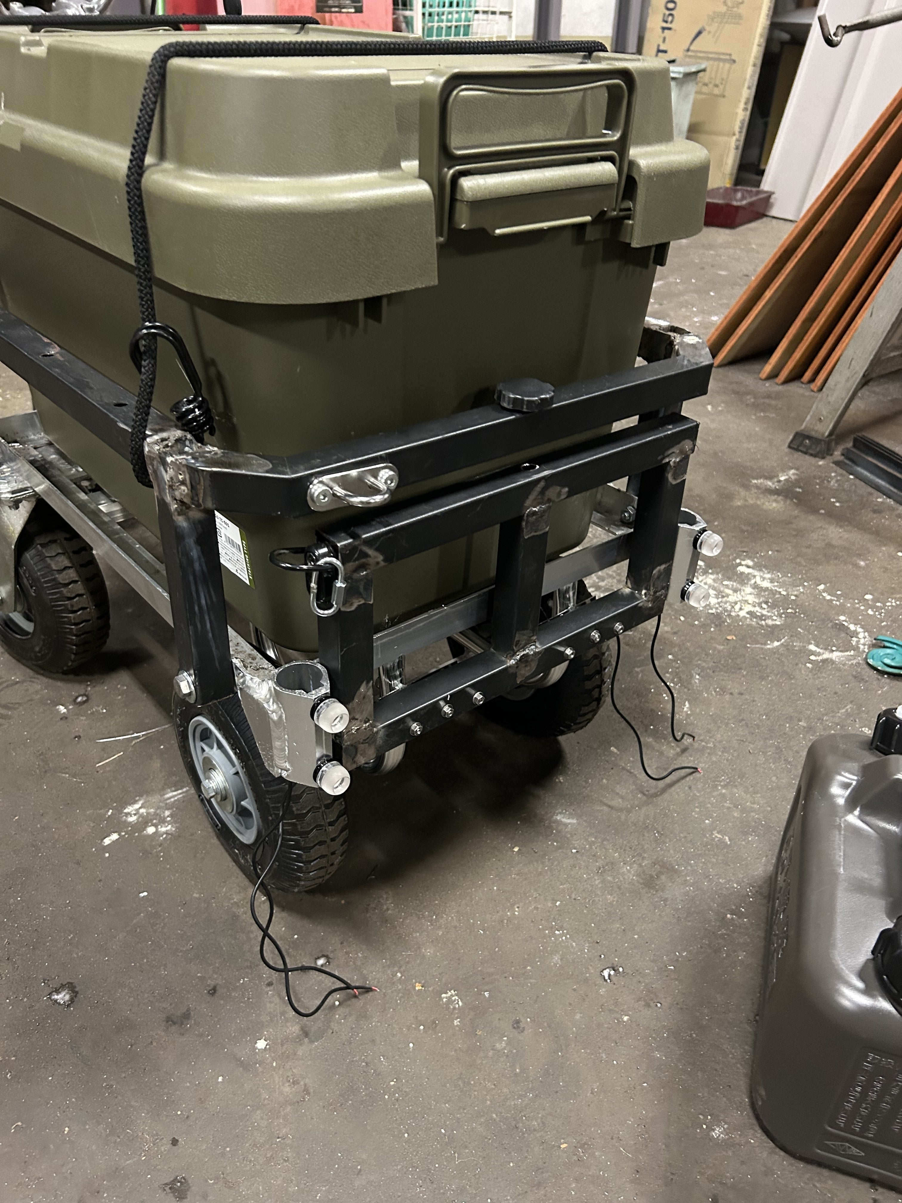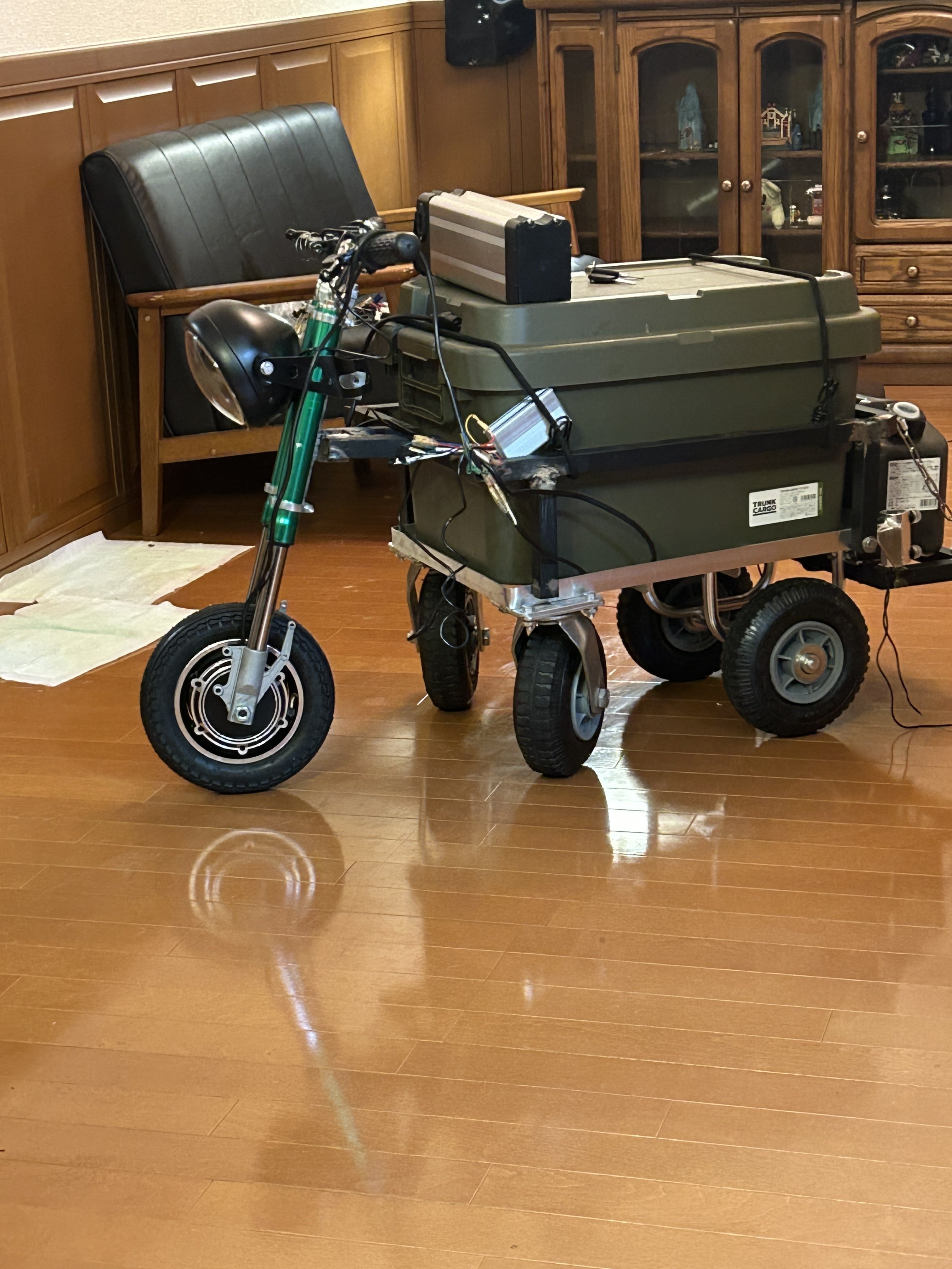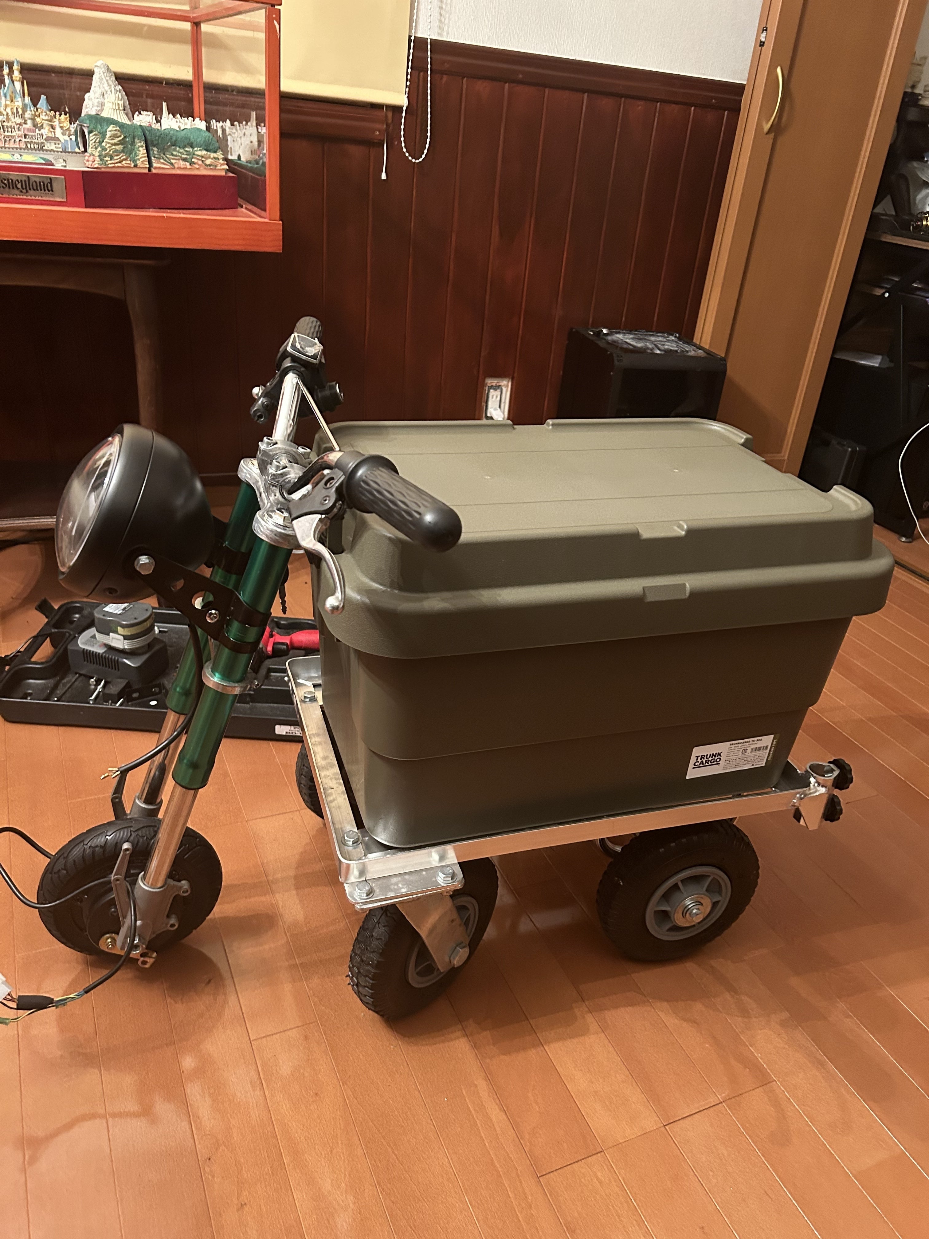 クーラーボックスやお気に入りのコンテナに跨り走ることを目標とした作品です。なのでクーラーボックス自体はお客様側で用意をしてもらうことが必須になってます