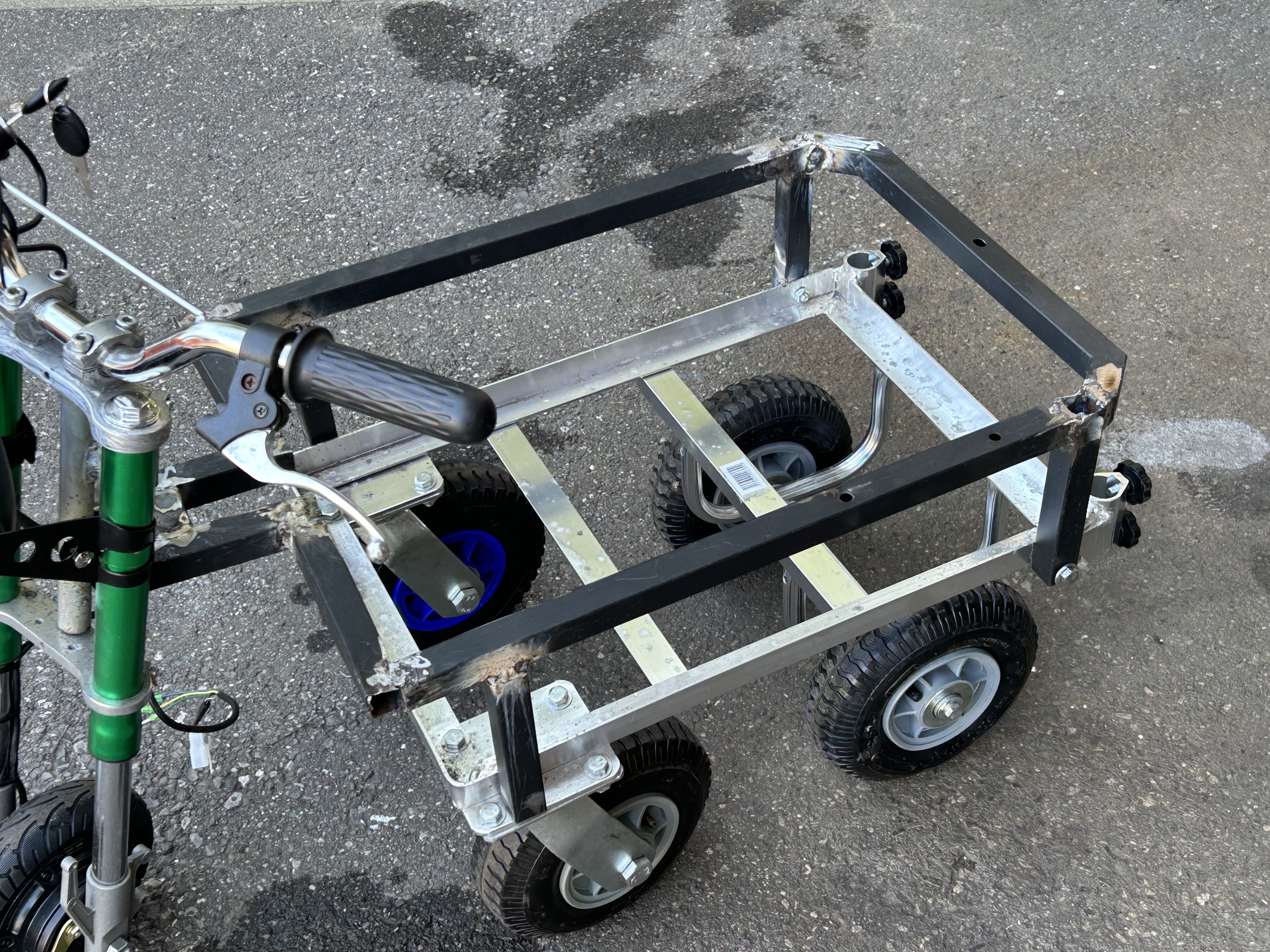 今回製作した試作機は小型特殊自動車の規定内で製作しているのでナンバー取得が可能です。詳しくはご自身がお住まいの市役所ホームページにて「小型特殊自動車ナンバー取得」と検索して適正にナンバー取得できるかをご確認頂きたく思います。