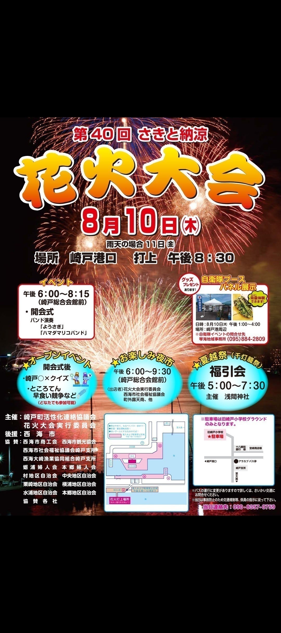 さきと納涼花火大会は崎戸花火大会実行委員会で運営しています。