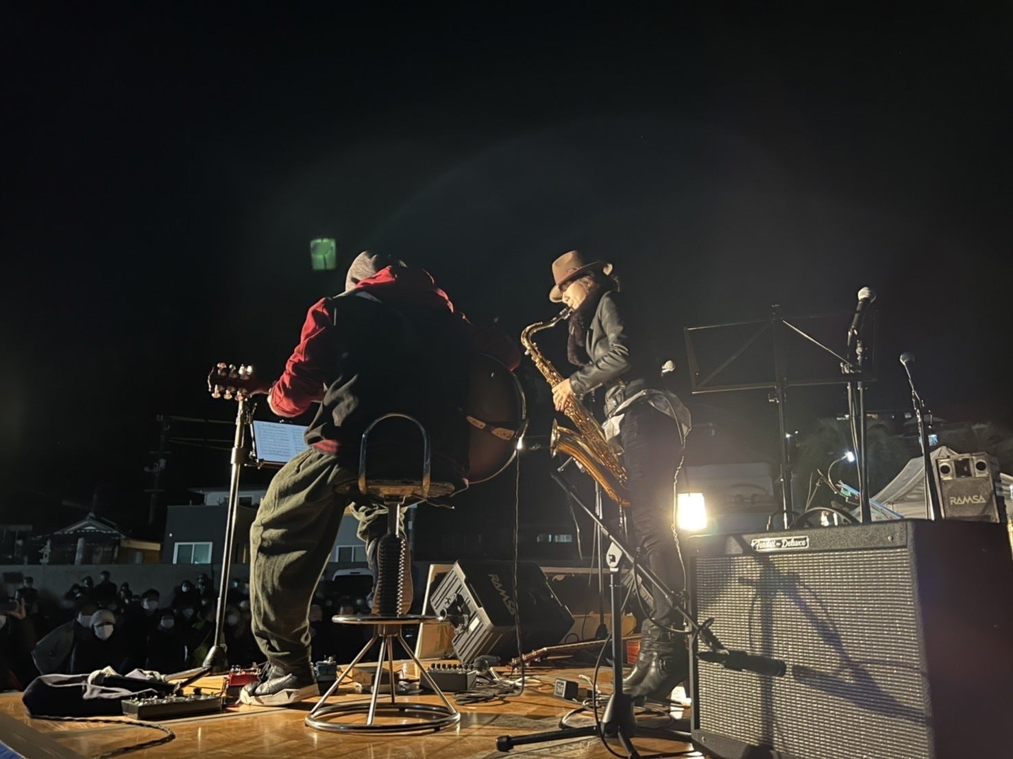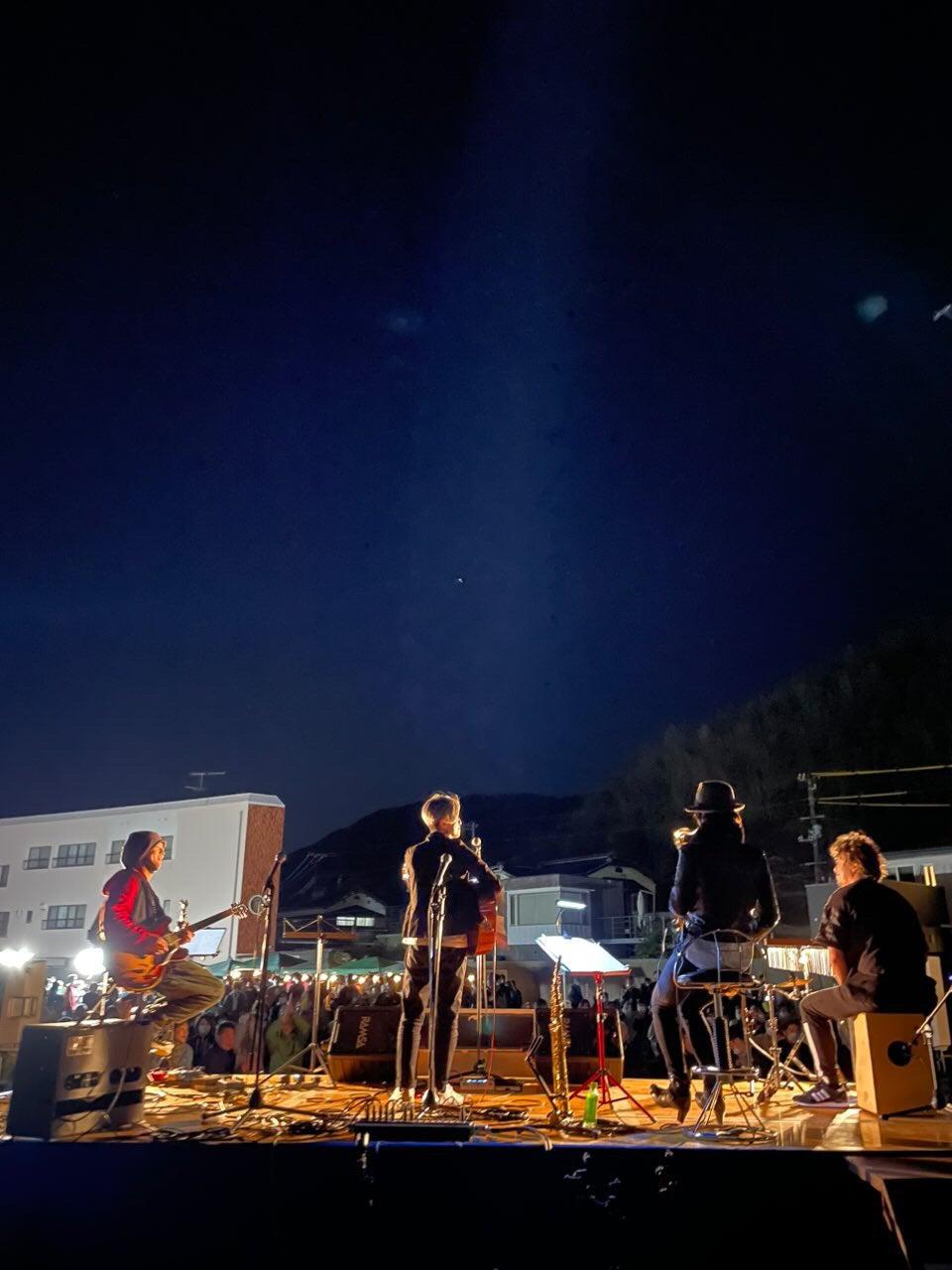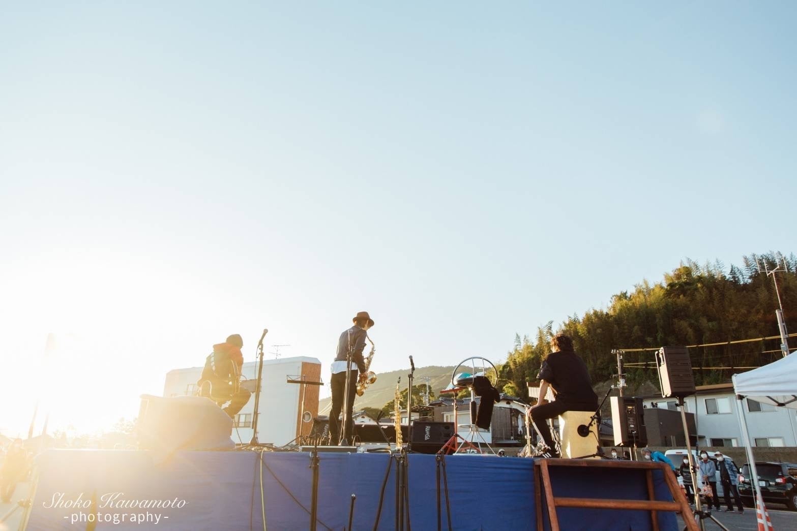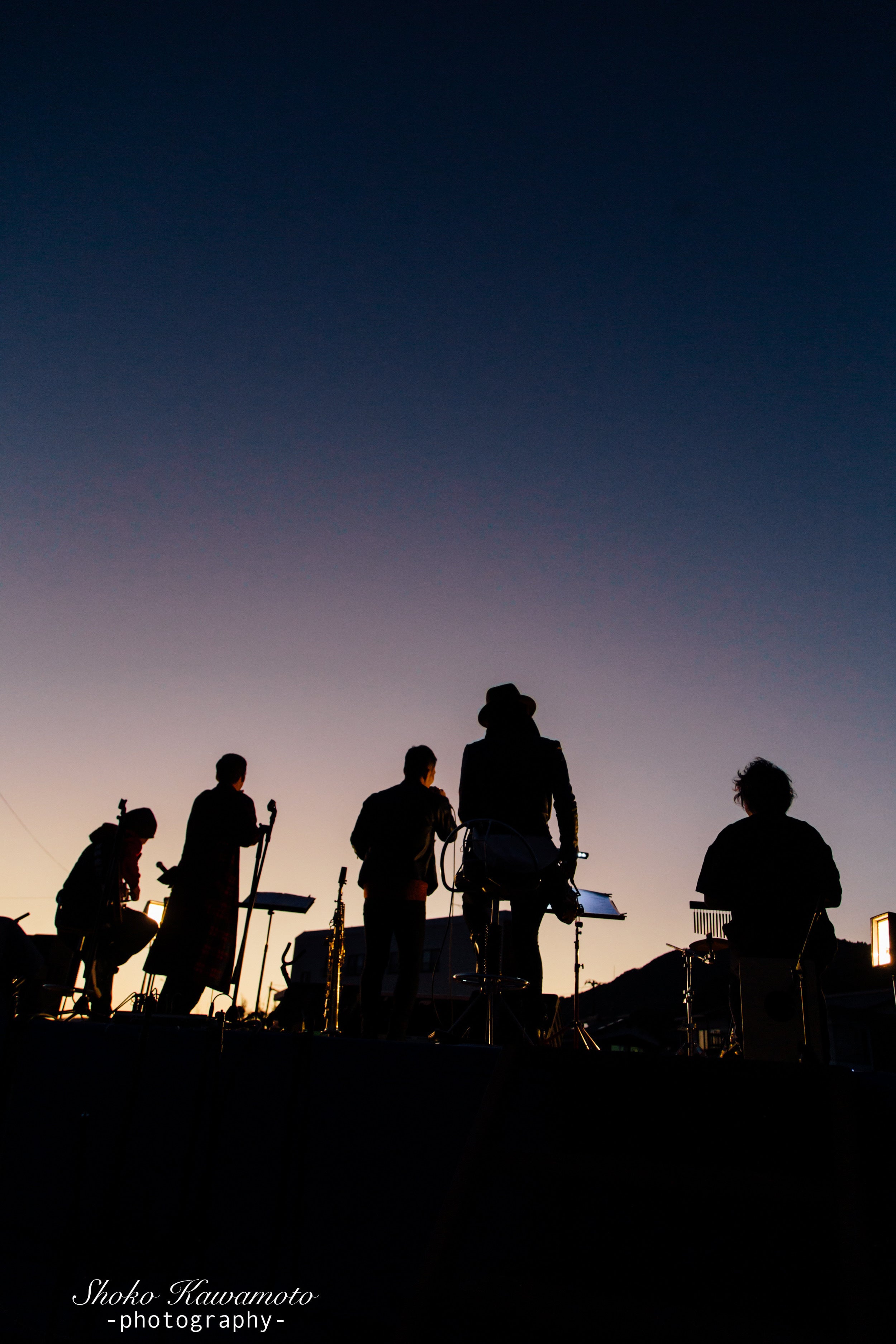 そして第1回目から出演してくださっているサックス奏者のUkoSaxyさんは、この地を訪れた時、美しい瀬戸内海と瀬戸内海のように穏やかな地元の人々に感銘を受け、その時の気持ちを『海と月の見える町』という曲にしてくださいました。瀬戸内海と夕陽をバックにこの曲を生で聴くのはまた一段と心に染み渡ります。