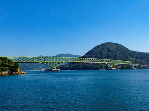 目の前に広がる周防大島は、片寄ヶ浜やビー玉海岸などのビーチが有名で、海岸の道沿いには南国気分高まるお洒落なハワイ風のカフェやレストランが点在しています。