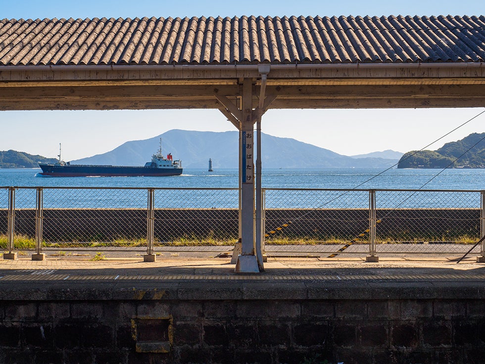 〈瀬戸内海の島々が真近に迫る大畠駅〉
