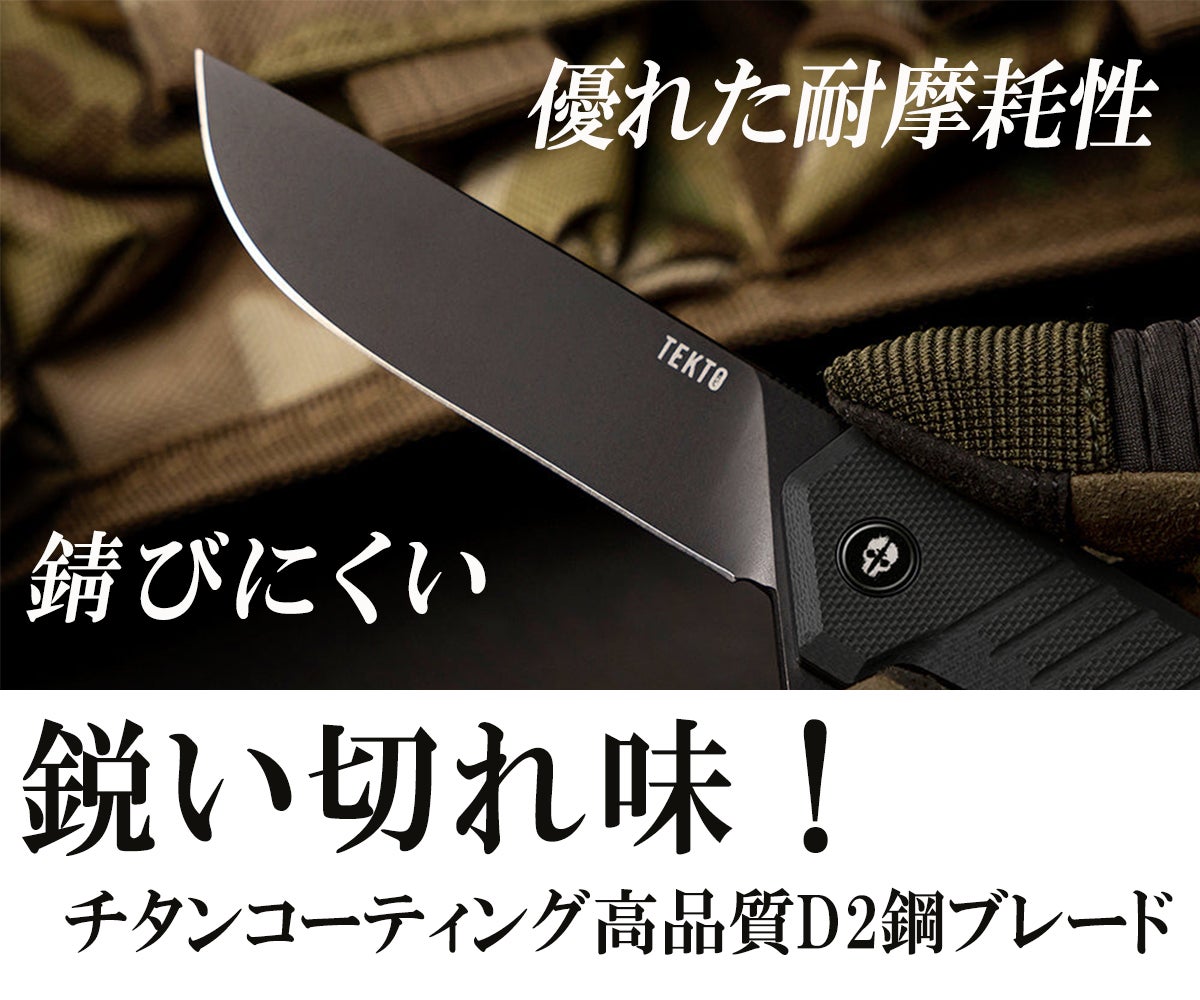 過酷なアウトドア環境にしっかり耐えられるD2鋼を使用。D2鋼は耐摩耗性が高く、長時間の使用においても刃の劣化を最小限に抑えます。これにより、頻繁な刃の研ぎ直しが不要となり、長期的なメンテナンスの手間を減らします。