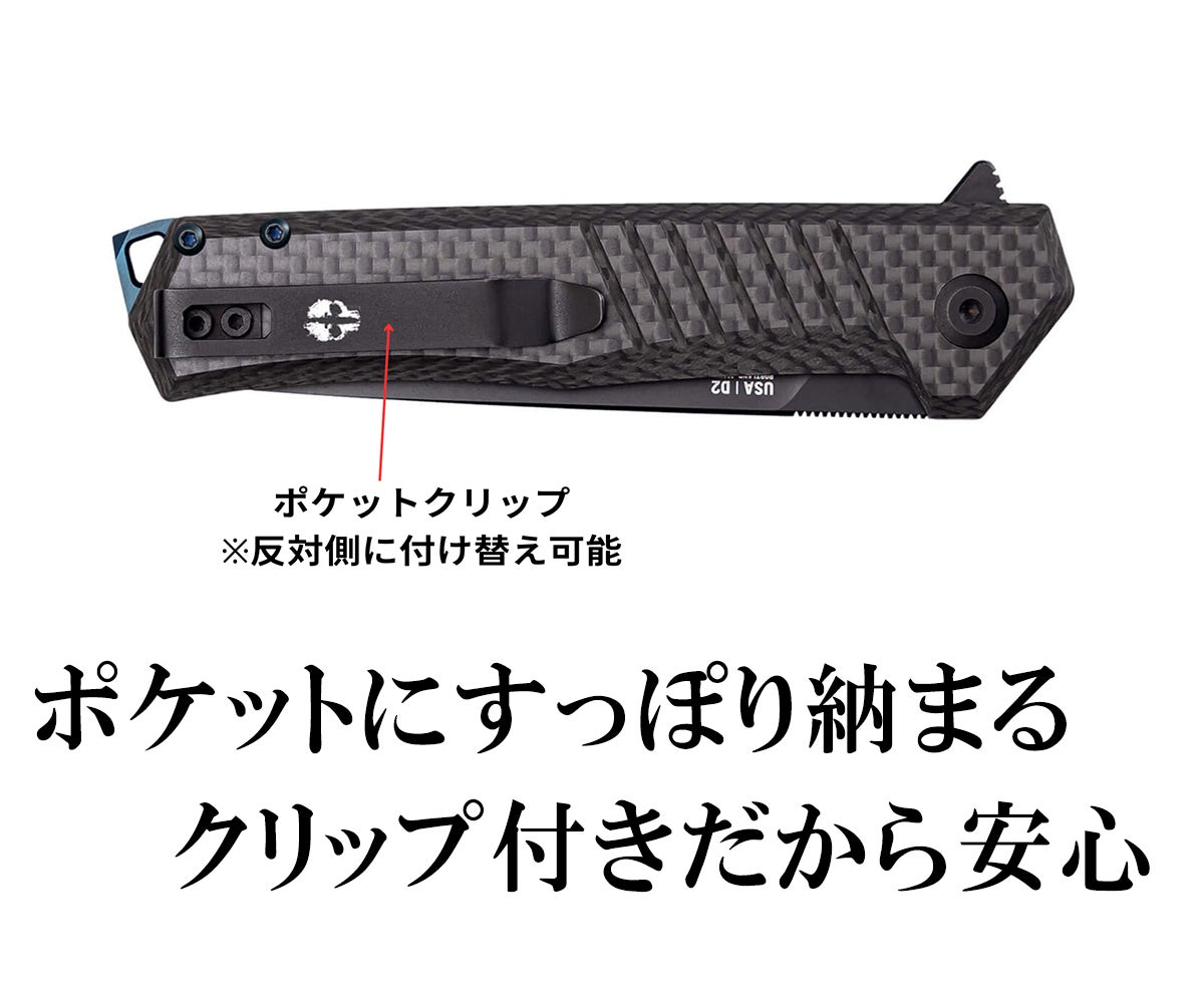 A. はい。私たちのナイフのほとんどは、左利き右利き両用のユーザーを念頭に置いて設計されています。ポケットクリップはF1 ALPHAの右側についています。安全と理想的な使用のために、ポケットクリップを再取り付けすることを強くお勧めします。