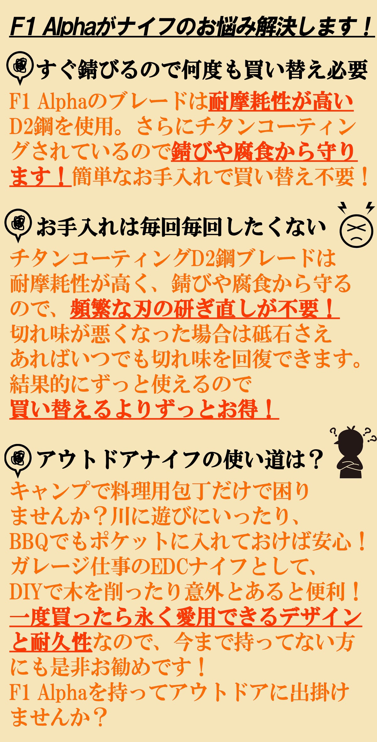 この度は数あるプロジェクトの中から「折り畳みアウトドアナイフF1 ALPHA」をご覧いたきありがとうございます。