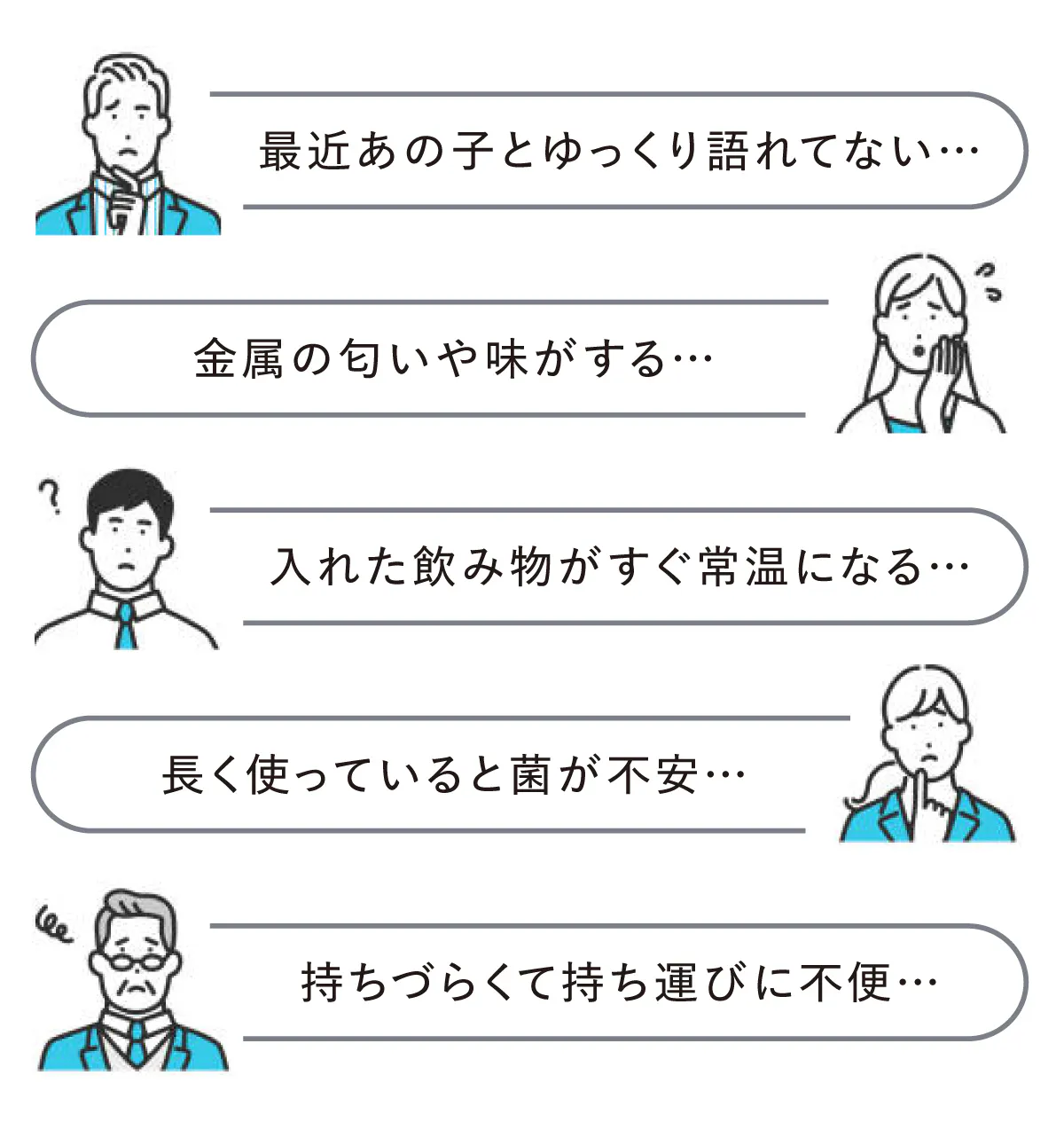 チタン製以外のコップを使っている方は、こんなお悩みはないですか?