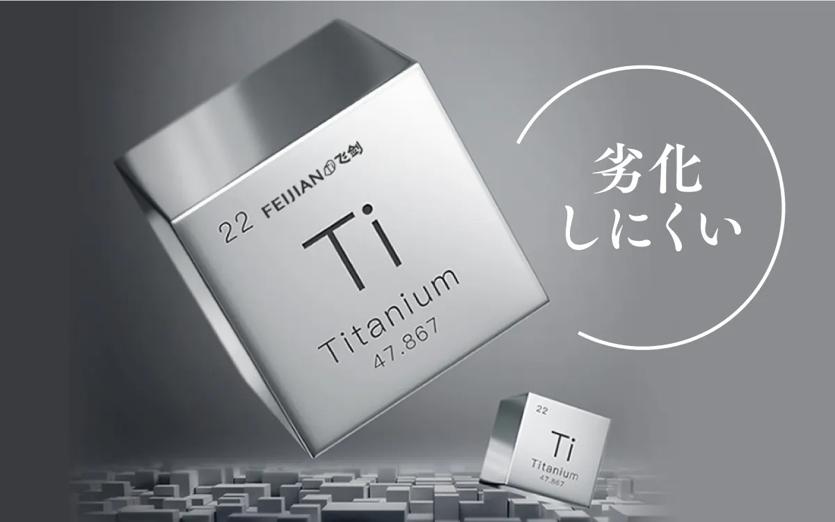 FEIJIAN社は、特殊な表面加工技術と製造機械、そして高級なチタン素材を使用。