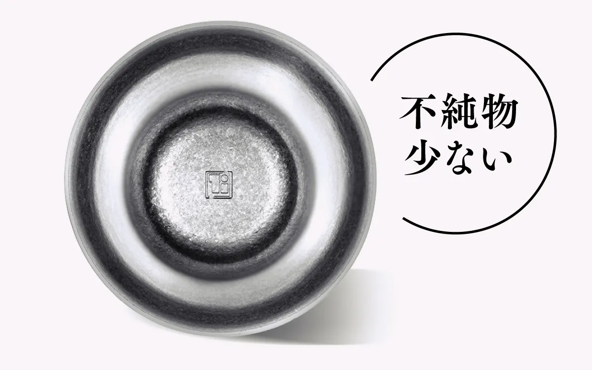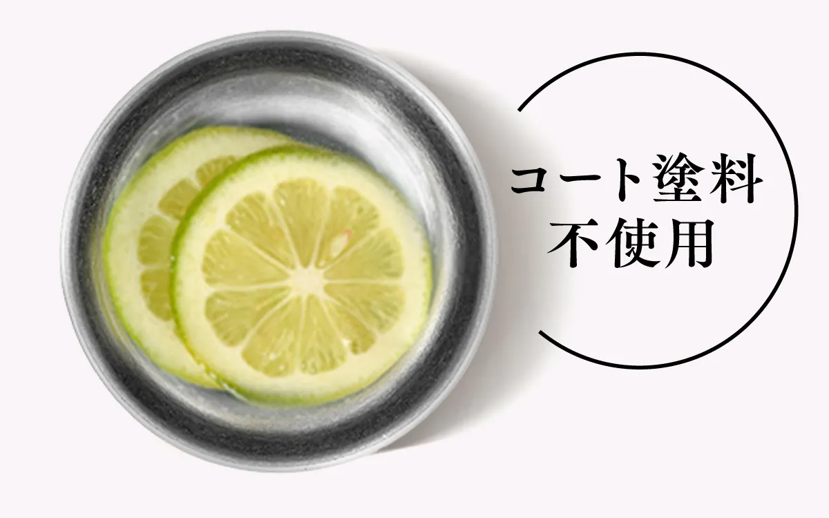 飲み物や私たちの体が触れても反応(イオン化)しづらく、金属の独特な匂いを感じづらい素材のため、ほぼ無味無臭なのです。