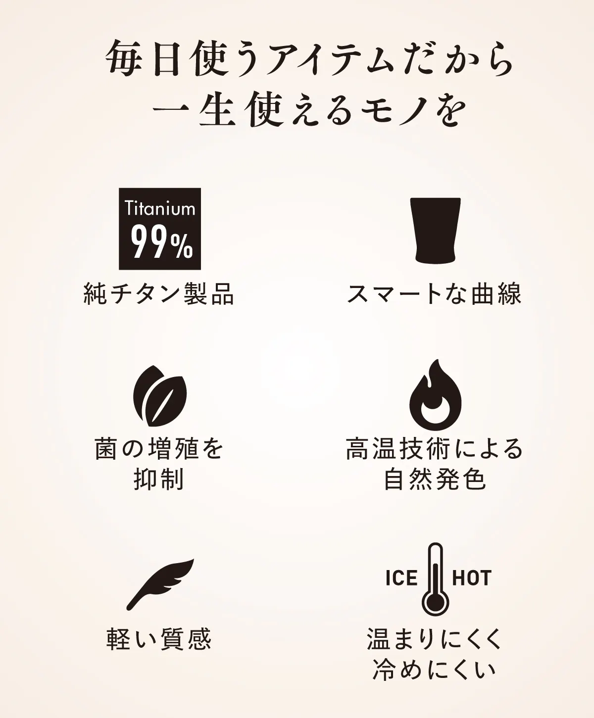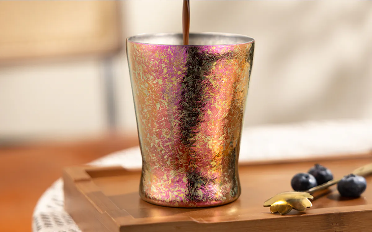 使うたびにワクワクするチタンコップなら、「コップなんて」と思っていた方にも、大切な人を誘うにも、億劫にならず毎日お使いいただけるのではないか。