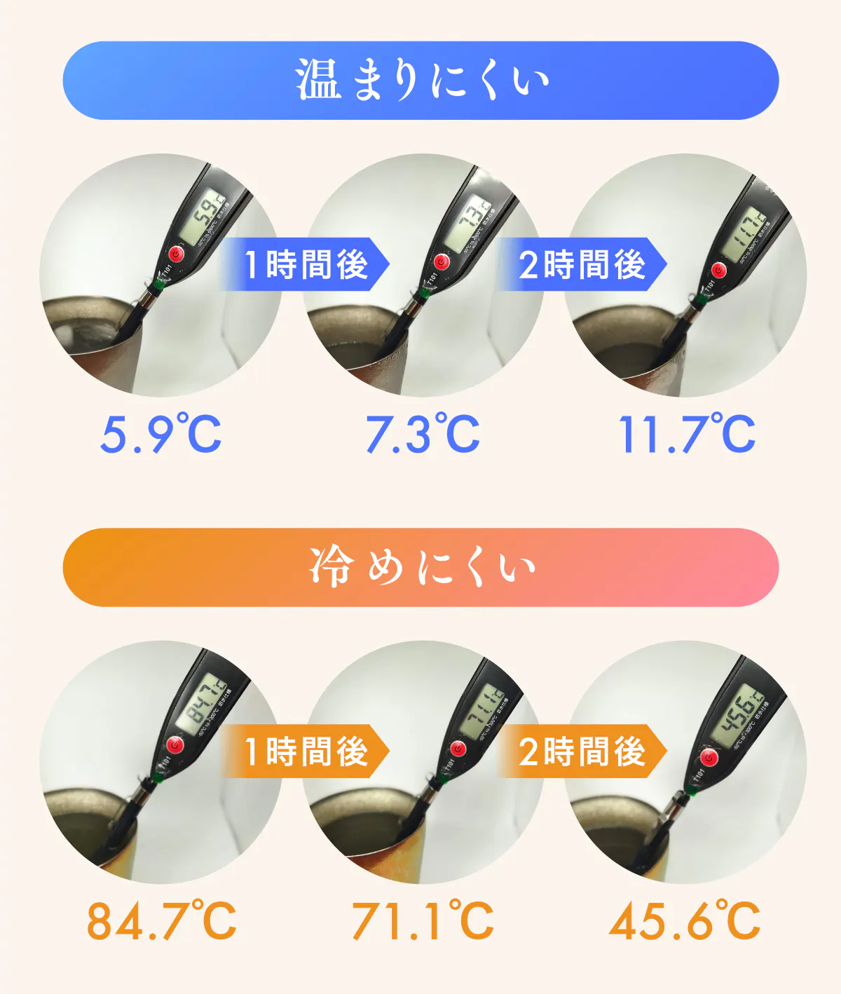 アイスはいつまでも冷たく、ホットはいつまでも温かさをキープ。