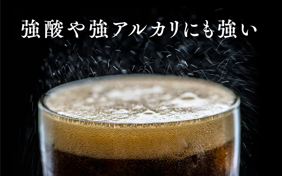 そのため、あらゆる強酸や強アルカリにも耐えることができます。